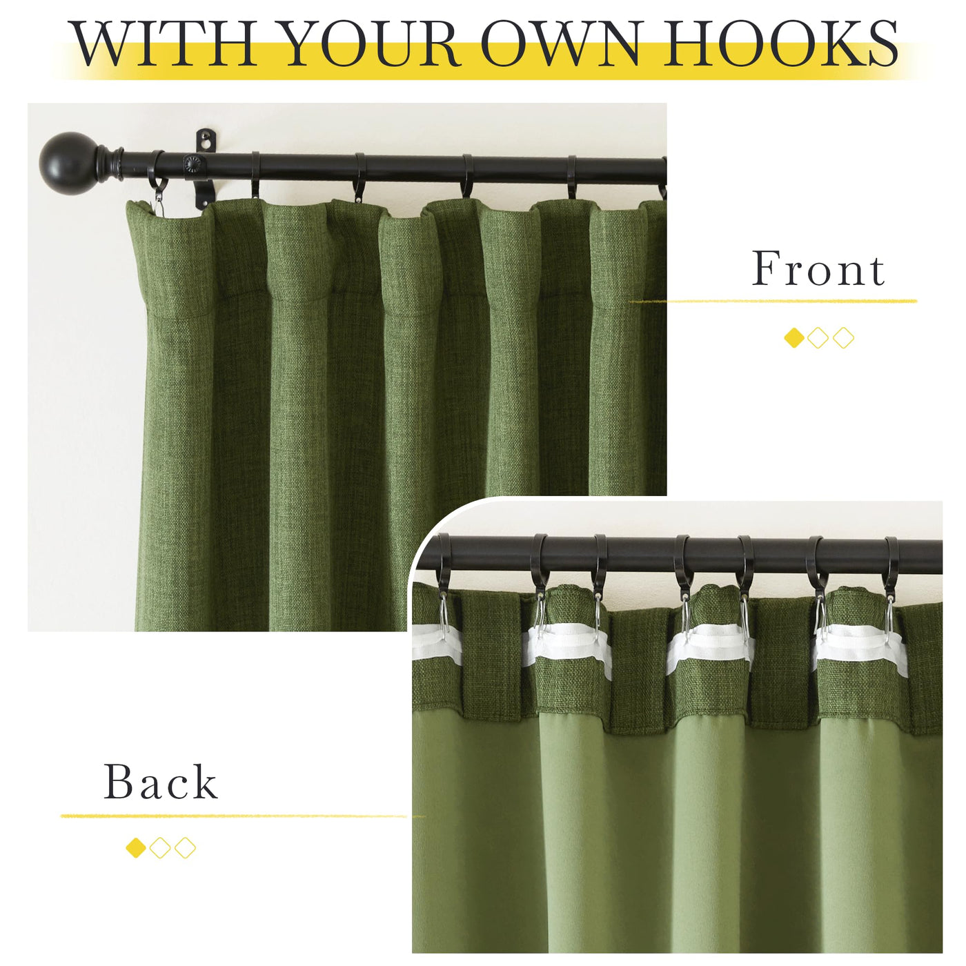 This Nicetown Faux Linen Blackout Curtains With 3 Hanging Options Design Can Provide A Stylish And Casual Look To Your Home Decor With A Refined Sense. Well Styled:You Can Hang The Curtains With Rod Pocket, Back Tab, And Hook Belt To Lend Your Windows Some Whimsical Texture And A Fanciful Look With Pinch Pleated Drapes And Curtains .Good Performance:The Fabric With Faux Linen Blend Will Block Most Of The Sunlight Out So That You Will Get A Good Sleep Or Rest At Day. The Weave Of The Yarn-Dyed Fibers Creates Dimensional Highs And Lows For Added Depth. These Curtains Are Casual & Rustic Options For Any Room In The Home.Easy Care:These Room-Darkening Window Curtains Are Available In Machine-Washable Fabrics For People Who Prefer Easy Maintenance. Hang Your New Drapes Using The Tabs Or Rod Pocket Design, Or Use Small Hooks To Let Them Gently Hang Downward. You'Re Bound To Find The Ideal Curtains For Your Home That'Ll Update Your Space In The Chic Form.