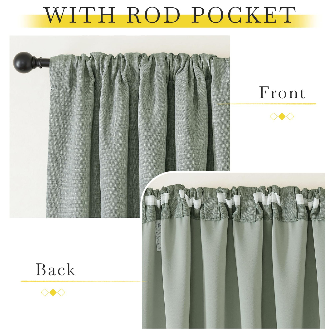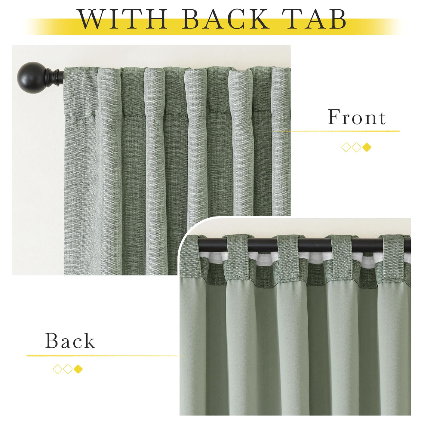 Nicetown Room Darkening Sage Green Faux Linen Curtains For Bedroom, Rod Pocket/Back Tab/Hook Belt Linen Burlap Light Blocking No