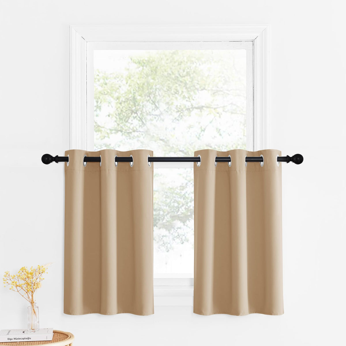 Nicetown Room Darkening Thermal Insulated Biscotti Beige Small Window Curtains 30 Inch Length For Rv Kitchen Bathroom Grommet Short Cafe Tier Half Door Curtain, 34' Wide Per Panel, 2 Panels