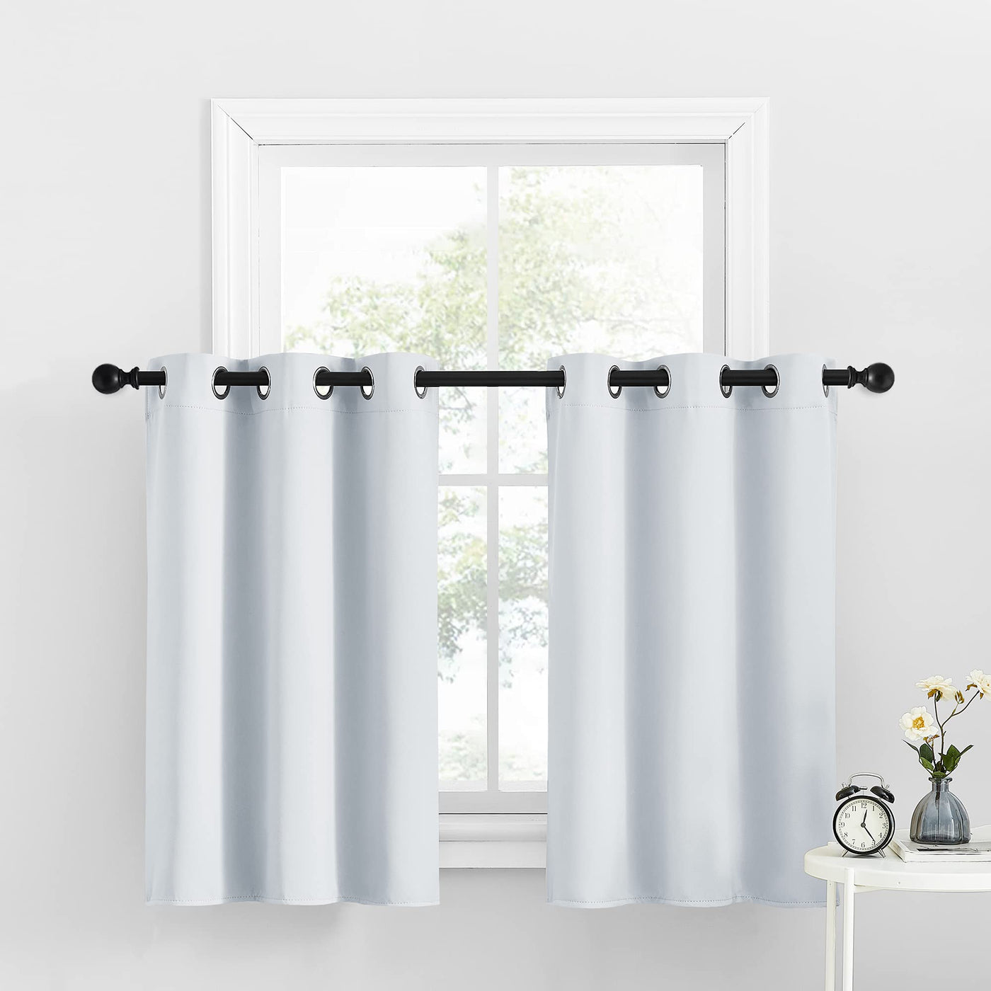 Nicetown Room Darkening Window Tiers, Kitchen/Bathroom/Kids Bedroom Decor Blackout Valances Thermal Insulated Window Treatment Short Curtain, White, 2 Panels, 34W By 36L With 1.2 Inches Header