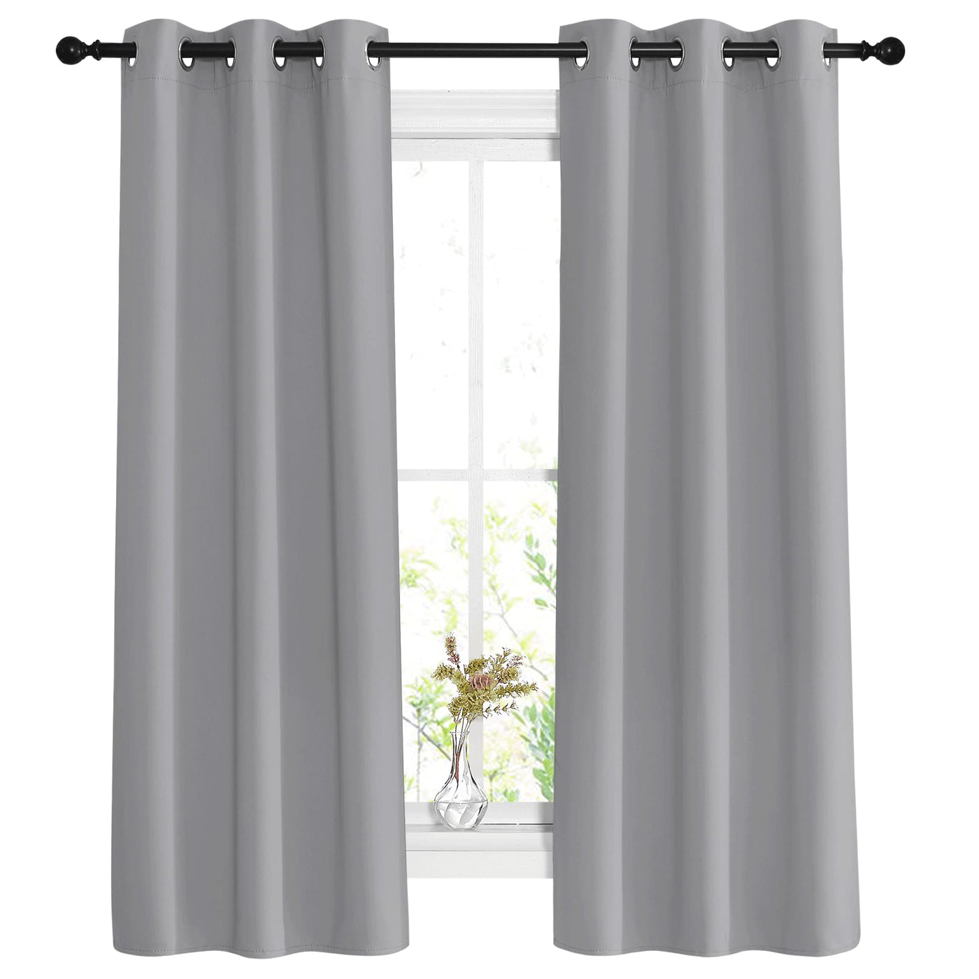 Nicetown Silver Grey Bedroom Curtains 63 Inch Length 2 Panels Set - Solid Thermal Insulated Grommet Light Blocking Blackout Curt