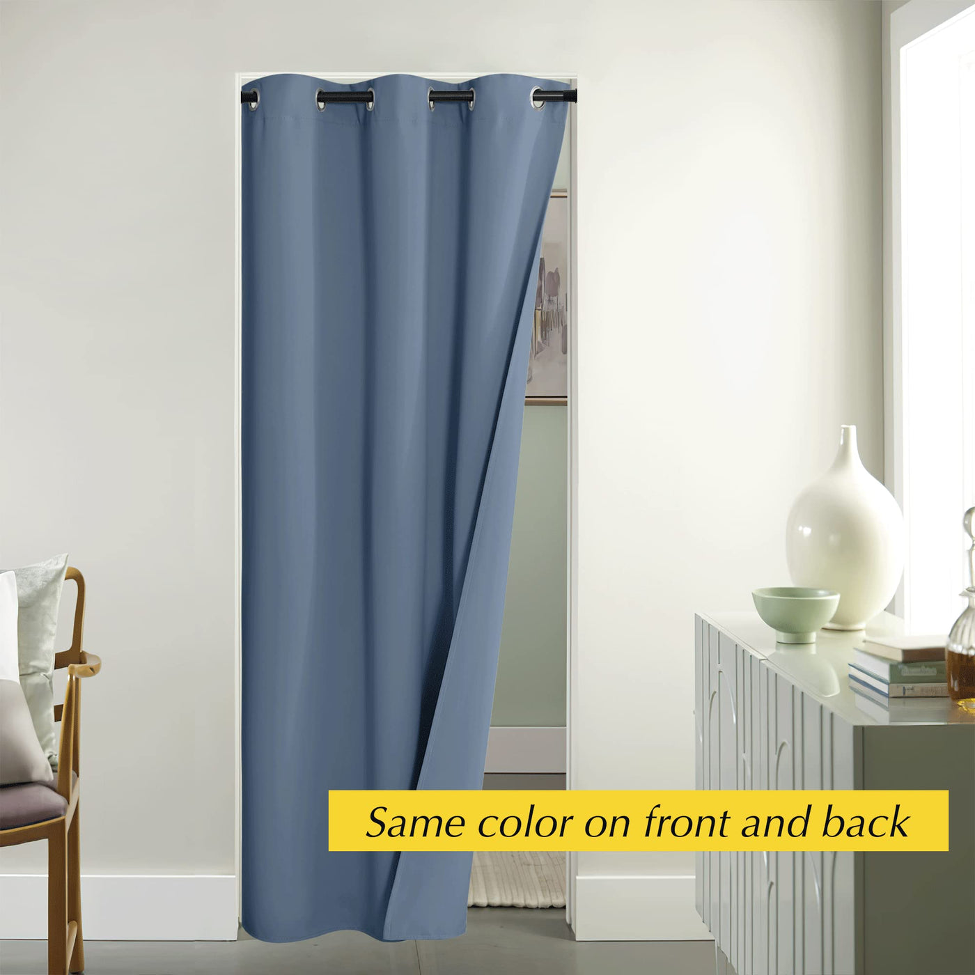 Nicetown Sliding Hanging Room Divider,60%-70% Soundproof Privacy Panel Keep Heat Out Closet Door Curtains For Bedroom Doorway Hiding Bathroom Laundry Shelves,42 X 95 Inches, 1 Panel, Stone Blue