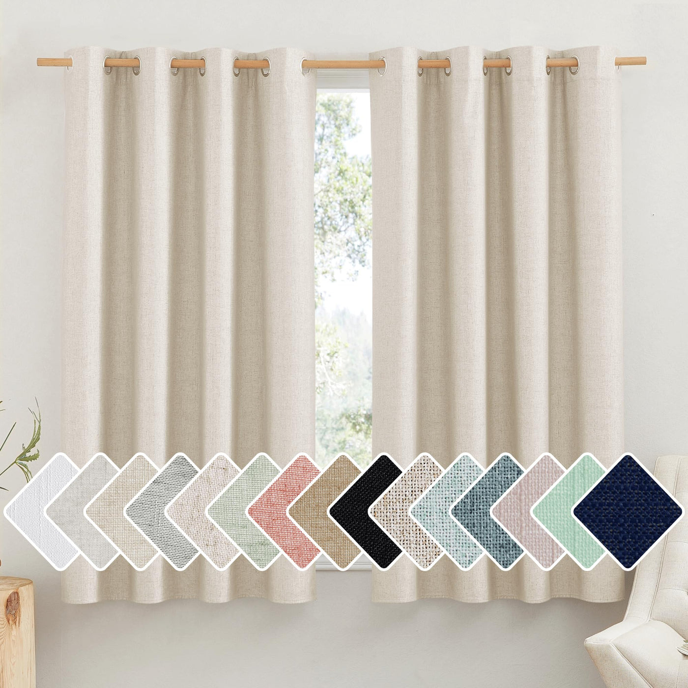 Nicetown Taupe 100% Blackout Linen Curtains 48 Inch Long Burg, Farmhouse Thick Completely Blackout Window Treatment Panels Therm