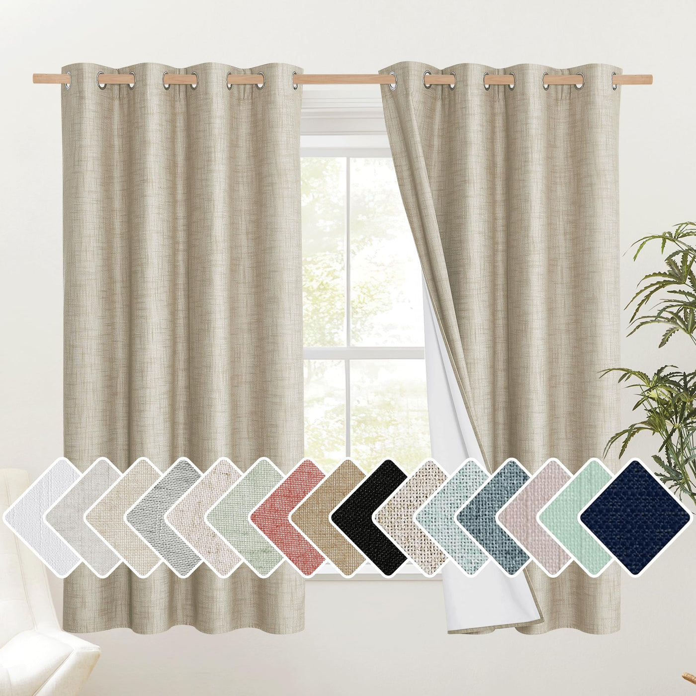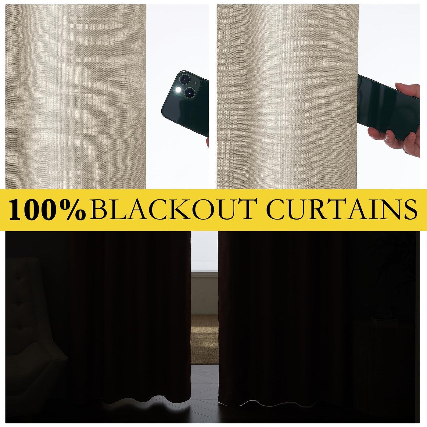 Nicetown Taupe 100% Blackout Linen Curtains 63 Inch Long Burg, Farmhouse Thick Completely Blackout Window Treatment Panels Thermal Insulated Drapes For Living Room (1 Pair, 52' Width Each Panel)