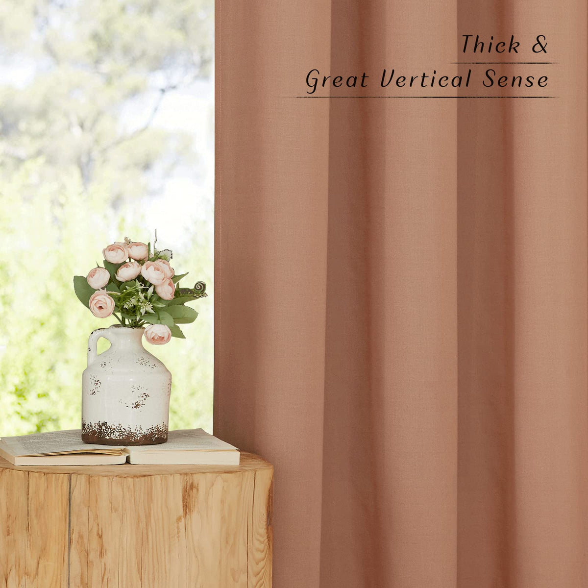 Nicetown Thick Linen Burlap Terracotta Curtains, Privacy Curtains That Let Light In Window Treatments Linen Blend Drapes For Living Room/Girls Bedroom, W55 X L72, 2 Panels