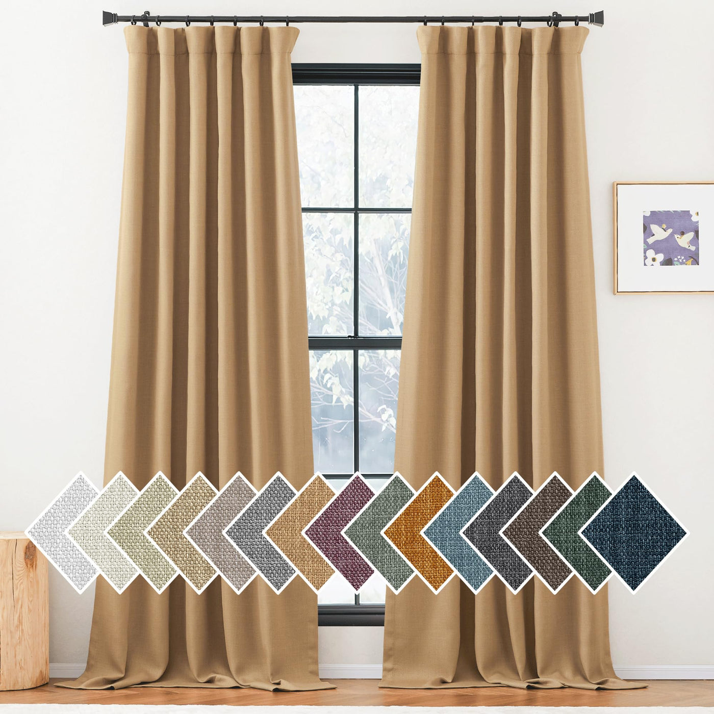 This Nicetown Faux Linen Blackout Curtains With 3 Hanging Options Design Can Provide A Stylish And Casual Look To Your Home Decor With A Refined Sense. Well Styled:You Can Hang The Curtains With Rod Pocket, Back Tab, And Hook Belt To Lend Your Windows Some Whimsical Texture And A Fanciful Look With Pinch Pleated Drapes And Curtains .Good Performance:The Fabric With Faux Linen Blend Will Block Most Of The Sunlight Out So That You Will Get A Good Sleep Or Rest At Day. The Weave Of The Yarn-Dyed Fibers Creates Dimensional Highs And Lows For Added Depth. These Curtains Are Casual & Rustic Options For Any Room In The Home.Easy Care:These Room-Darkening Window Curtains Are Available In Machine-Washable Fabrics For People Who Prefer Easy Maintenance. Hang Your New Drapes Using The Tabs Or Rod Pocket Design, Or Use Small Hooks To Let Them Gently Hang Downward. You'Re Bound To Find The Ideal Curtains For Your Home That'Ll Update Your Space In The Chic Form.