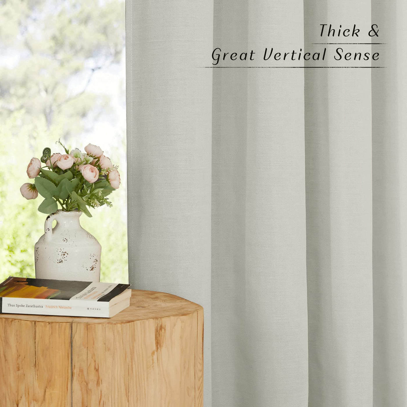 Nicetown Thick Semi Sheer Linen Gray Curtains For Boys Room, Grommet Privacy Added With Light Through Semitransparent Linen Weave Drapes For Farmhouse And Bedroom, W55 X L96, 2 Pieces