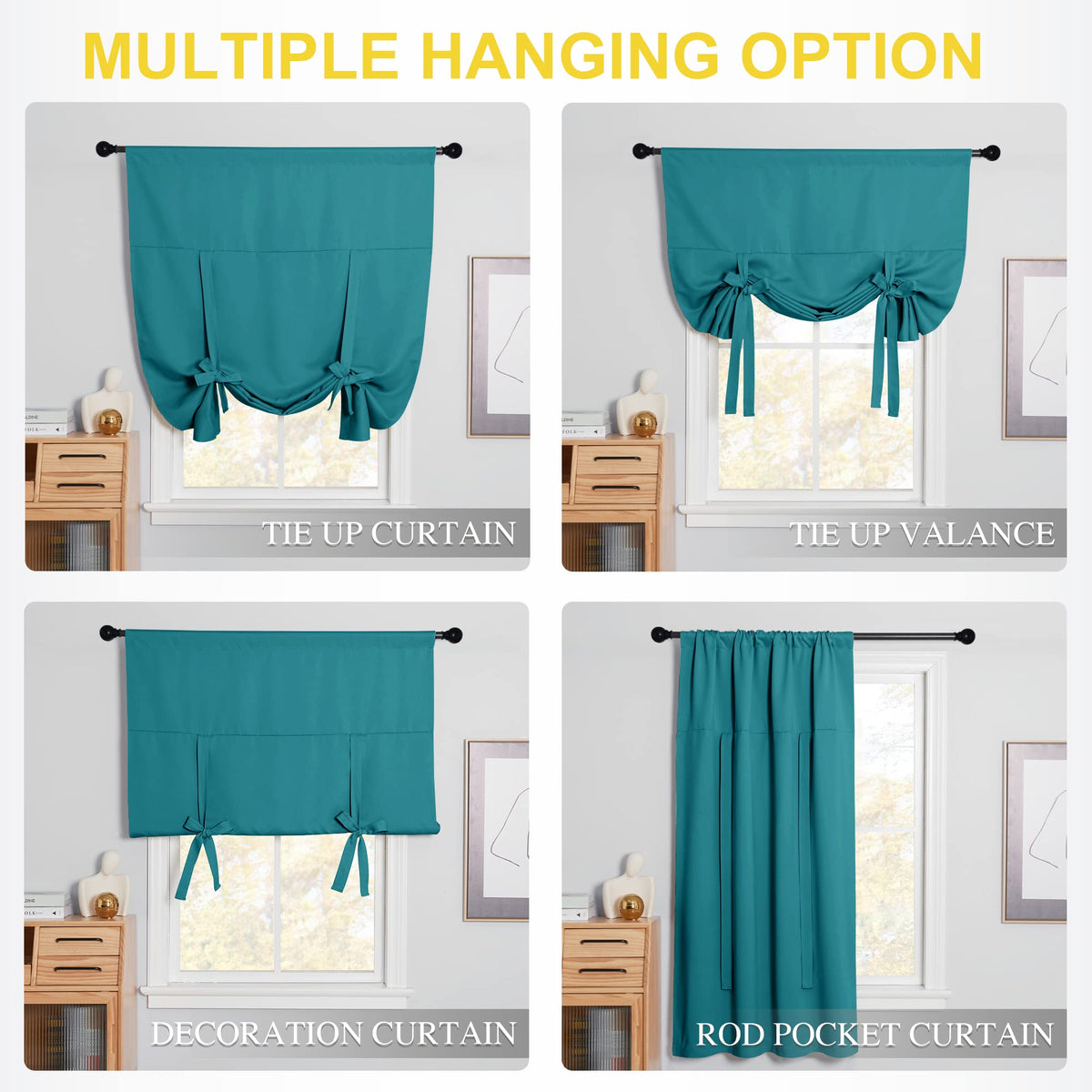 With Nicetown Rod Pocket Tie Up Shade, There Is More To It.Fit Nicely:Package Includes 1 Panel Tie Up Shades With 46'' Width X 63'' Length, The Same Color As Front. 3'' Pocket Fits Various Standard Or Decorative Curtain Rod/Pole.Particularly Suitable: The Small Window In The Basement, Living Room, Kitchen, Bedroom, Bathroom, Department, Etc.Performance:Different From The Other Ordinary Lightweight Fabric, Nicetown Tie Up Shade Drapes Are Used Super Soft Innovative Triple-Weave 200 Gsm Polyester Fabric, So Our Products In Terms Of Shading And Sound Insulation Better.Elegant Tie Up Shade Blocks Out Unwanted Light. Triple Weave Blackout Fabric Balances Room Temperature By Insulating Against Summer Heat And Winter Chill. The Sophisticated Designs Allow You To Decorate Your Windows With Great Styles. Protect Your Furniture, Floors, And Artwork From The Ravages Of The Sun.Tips:Curtains Are Made To Last. Machine Washable In Cold Water, Tumble Dry. Quick Iron Or Steam Clean When Needed.Search Nicetown For A Video On How To Tie A Bow.Note: Due To Different Screen Displays, The Color Of The Actual Item May Vary Slightly From The Above Images.
