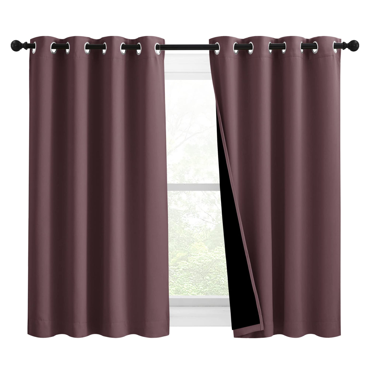 Nicetown Warm Curtains For Winter, Bedroom Full Blackout Curtain Panels, Great Job For Blocking Light, Complete Blackout Draperies With Black Liner For Night Shift (Dry Rose, Set Of 2, 46 By 54-Inch)