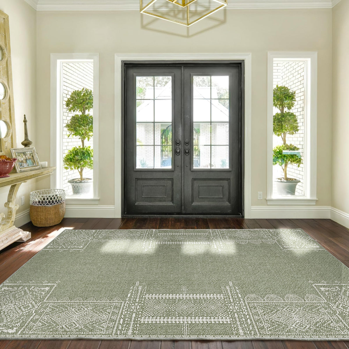 Nicetown Washable Rugs Green Area Rugs 8X10 Geometric Thin Rugs - Boho Non-Slip Entryway Rug Oriental Medallion Living Room Rug