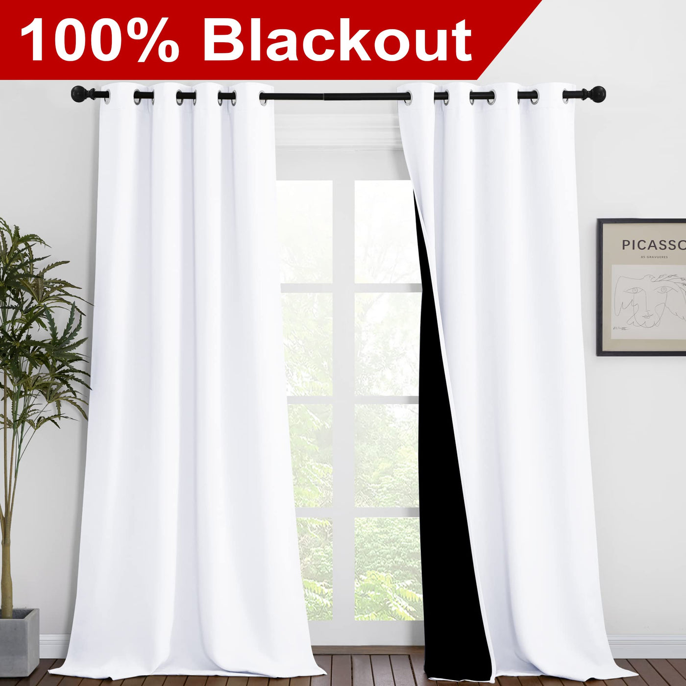Nicetown White 100% Blackout Curtains For Windows, Pack Of 2, 46' W X 102' L, Super Heavy-Duty Black Lined Total Darkness Drapes For Bedroom, Privacy Assured Window Treatment For Patio