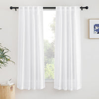 Nicetown White Bedroom Curtains 63 Inches Long, Rod Pocket & Back Tab Faux Linen Semi Sheer Window Treatments Privacy With Light