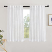 Nicetown White Faux Linen 48 Inch Curtains For Cafe, Rod Pocket & Back Tab Linen Weave Window Treatments Privacy With Light Filt