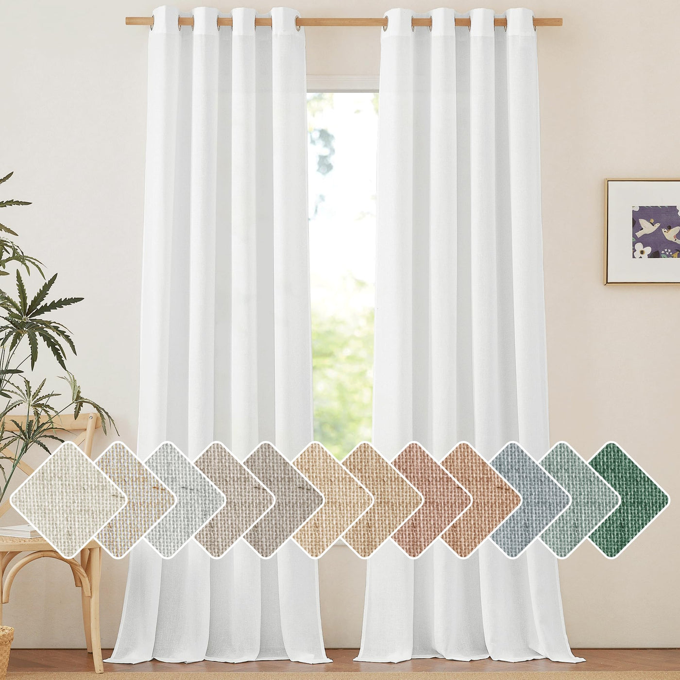 Nicetown White Linen Curtains 108 Inches Long For Home Office, Grommet Privacy Added With Light Filtering Thick Flax Window Treatments For Bedroom/Living Room, Natural, W55 X L108, 2 Panels