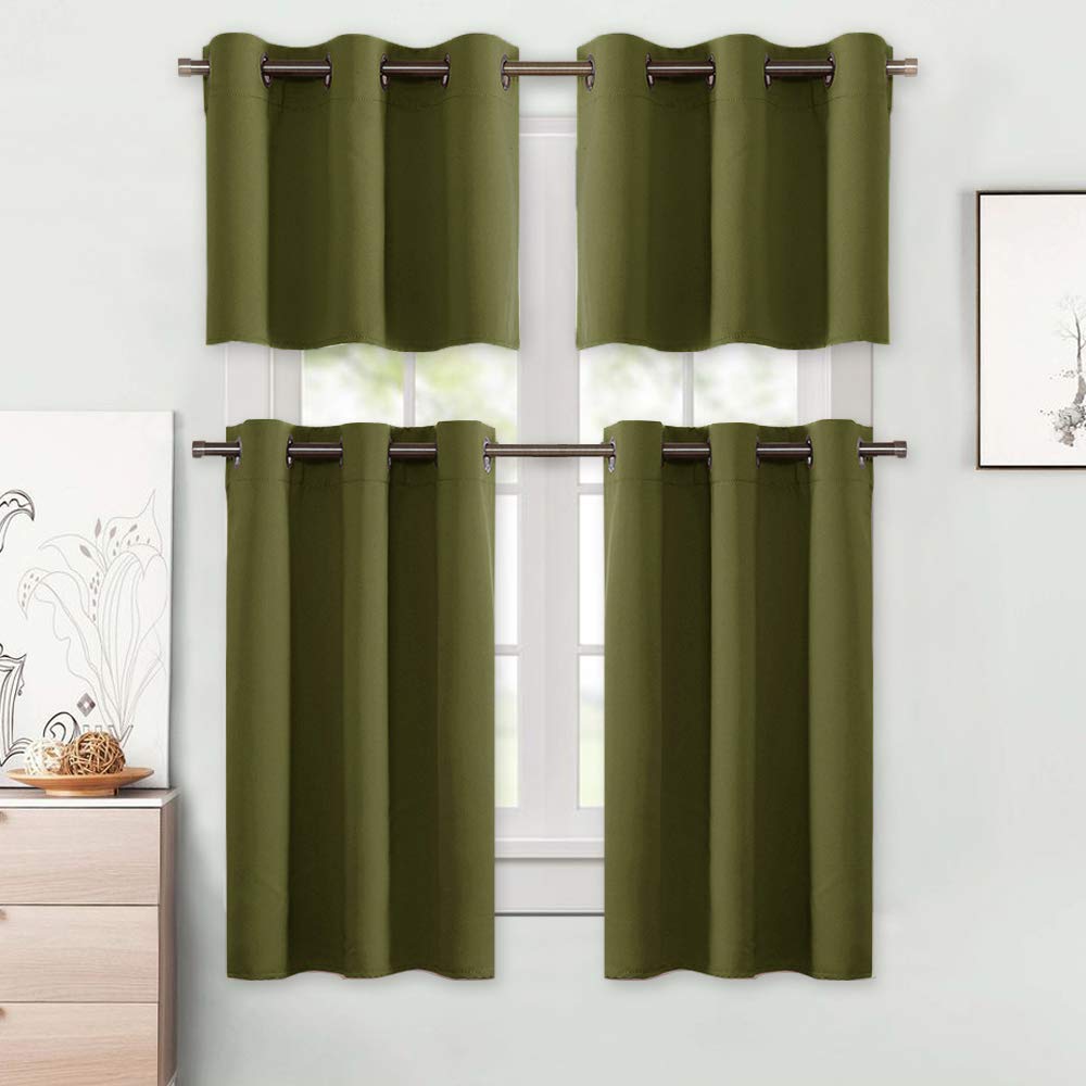 Nicetown Window Blackout Valance For Kitchen Window, Grommet Window Treatment Thermal Insulated Draperies For Living Room (1 Pair, 42 Inches Wide X 18 Inches Long 1.2 Inches Header, Olive Green)