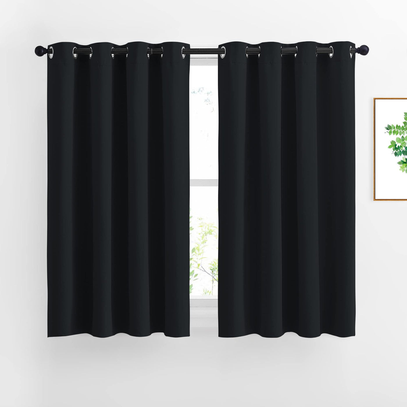 Nicetown Window Curtains Blackout Drapes - Black Energy Saving Blackout Draperies For Bedroom/Living Room (2 Panels, 52 Inches W