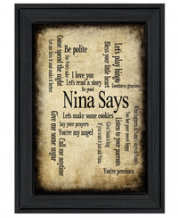Unique and decorative, this nina says 2 black framed print wall art will leave a lasting impression. This print is a visual artistic expression that allows you to decorate your space in reproduced for you on paper, this hanging decorative accent will be a trendy and fashionable way to dress your walls. Adding this hanging wall art to your space to make your room feel more and attractive. Utilize this opportunity to create a focal point in the room with this wonderful wall with this wonderful wall decor option. 15. 'H x 11' W x 1' D