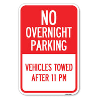 No Overnight Parking, Vehicles Towed After 11 Pm | 12' X 18' Heavy-Gauge Aluminum Rust Proof Parking Sign | Protect Your Busin