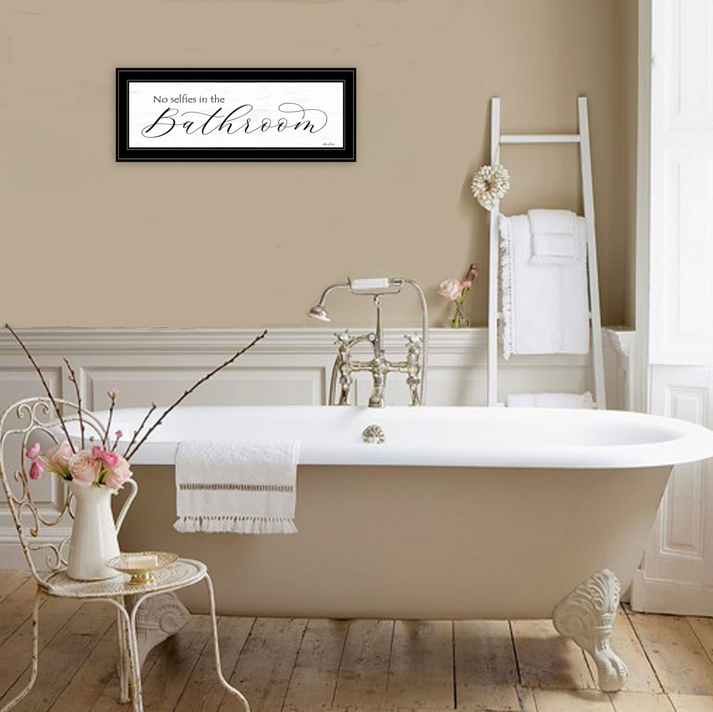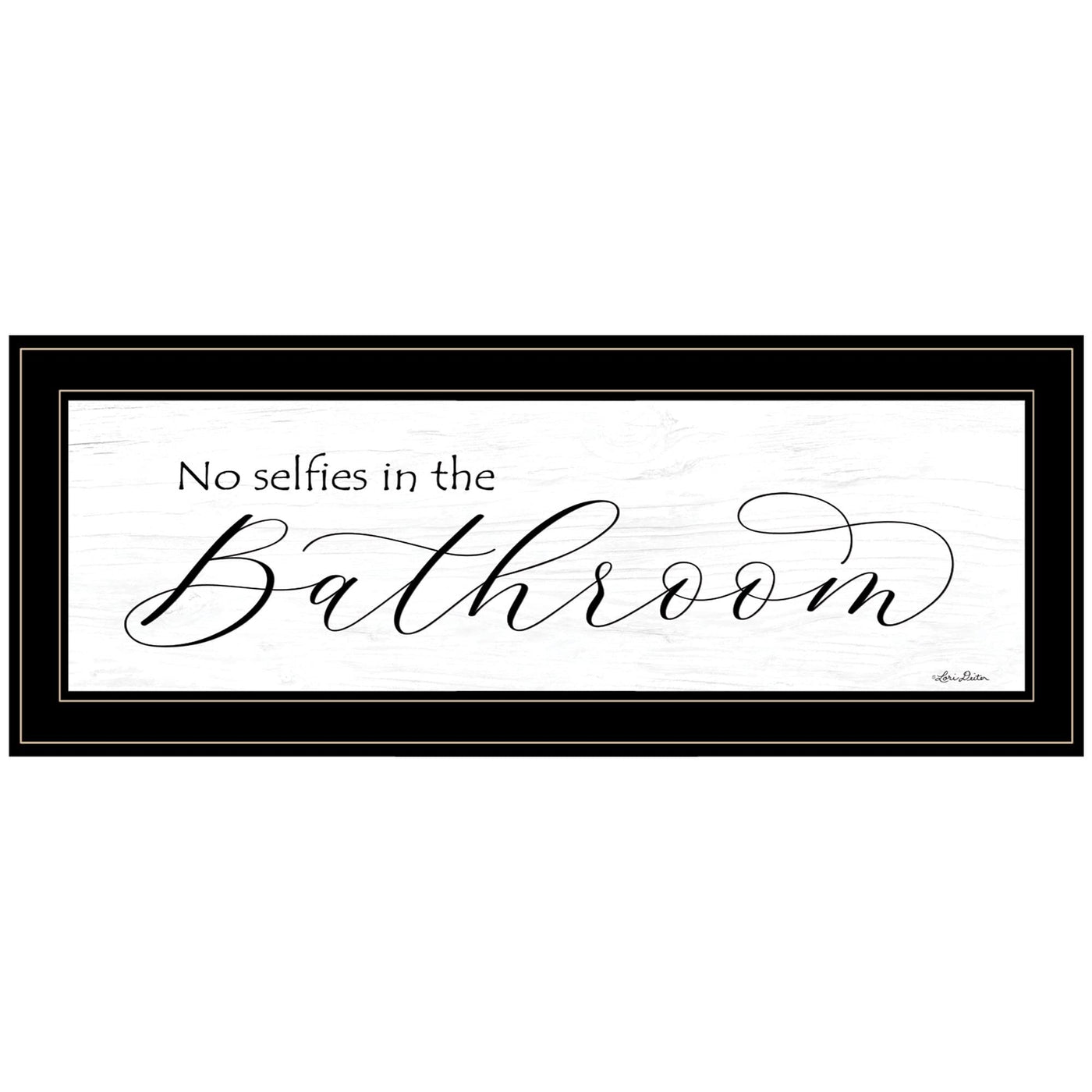 Add an air of fashion to your room and rejuvenate the space with this no selfies in the bathroom 3 black framed print wall art. This print is a visual artistic expression that allows you to decorate your space in a restyle. This hanging accent will be a trendy and fashionable way to dress your walls. Hang on your wall to add up to some fashion and decoration. Utilize this opportunity to create a focal point in the room with the room. This wonderful wall decor op. tion. 11' H x 23' W x 1' D
