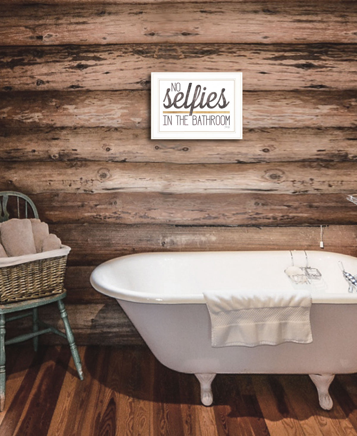 Unique and decorative, this no selfies in the bathroom 5 white framed print wall art will leave a lasting impression. This print is a visual artistic expression that allows you to decorate your space in style. Reproduced for you on wood, this hanging accent will be a trendy walls and fashionable way to dress your in a rustic and modern farmhouse vibe. Adding this hanging wall to your space to make your room feel more expensive. to create a focal point in the room with this wonderful wall decor option. 15' H x 21' W x 1' D
