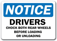 Notice Sign - Drivers Chock Both Rear Wheels Before Loading Or Unloading - 10' X 14' Osha Safety Sign