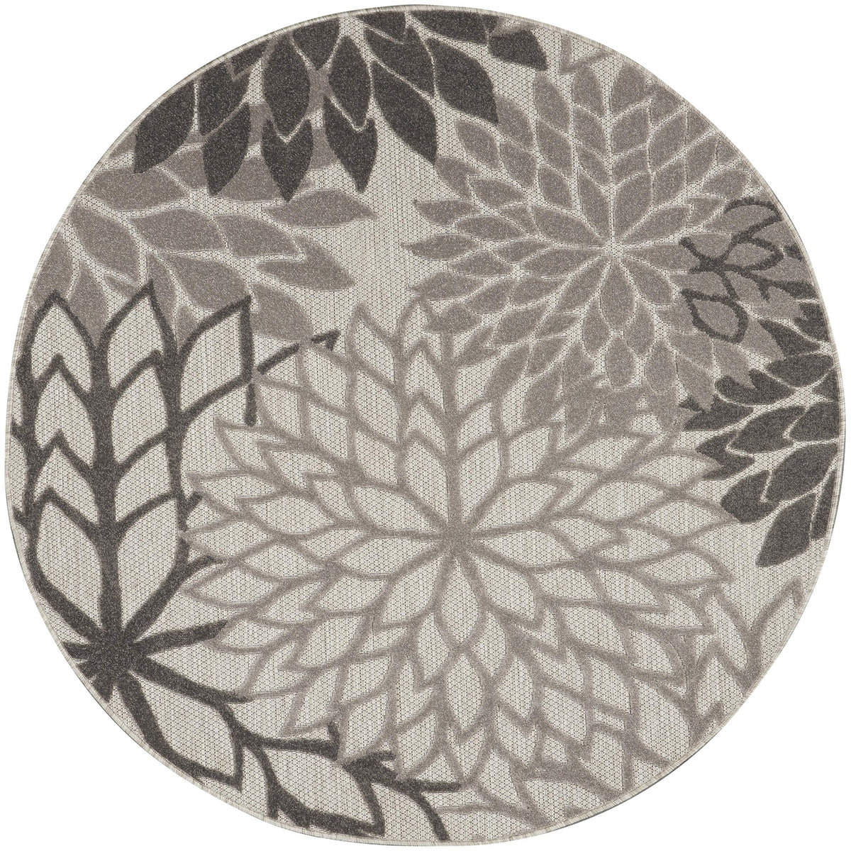 Nourison Aloha Indoor/Outdoor Floral Silver Grey 5'3' X Round Area Rug, (5' Round)