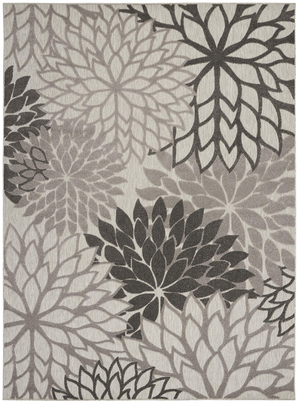 Nourison Aloha Indoor/Outdoor Floral Silver Grey 7' X 10' Area Rug, (7' X 10')