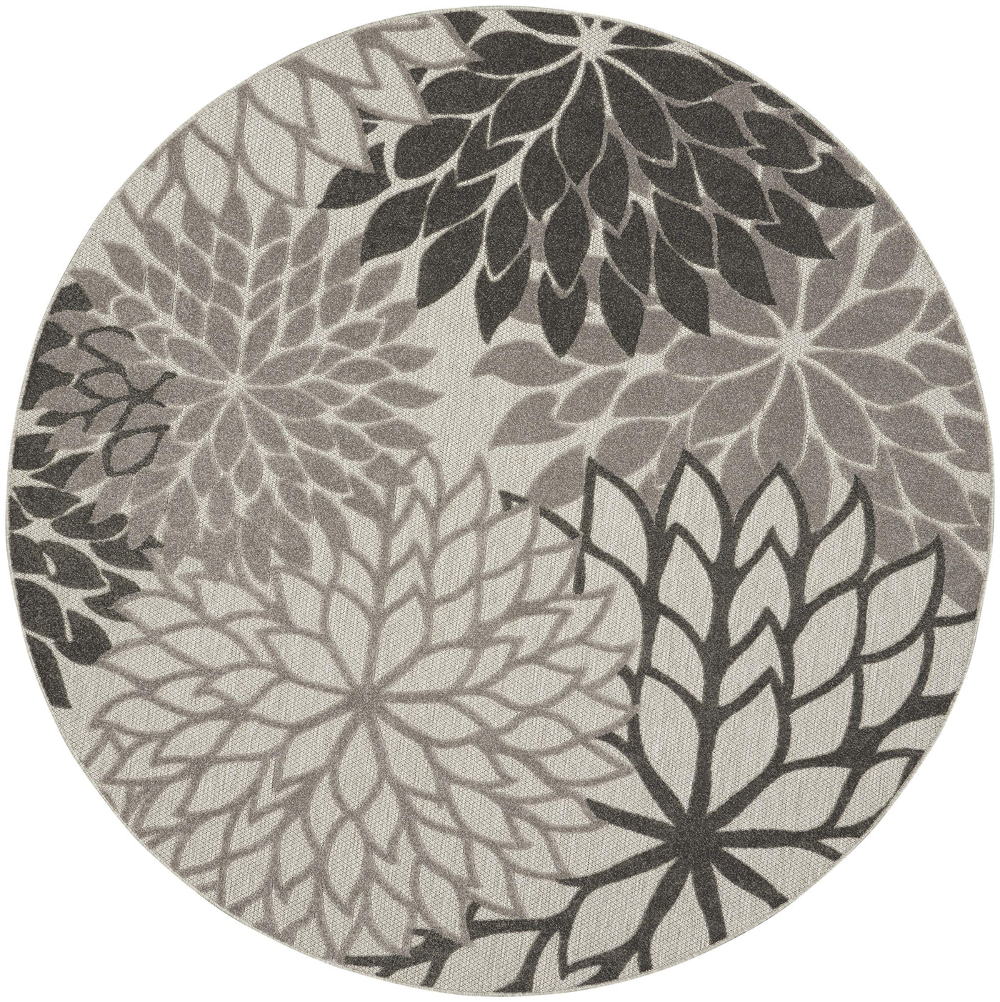 Nourison Aloha Indoor/Outdoor Floral Silver Grey 7'10' X Round Area Rug, (8' Round)