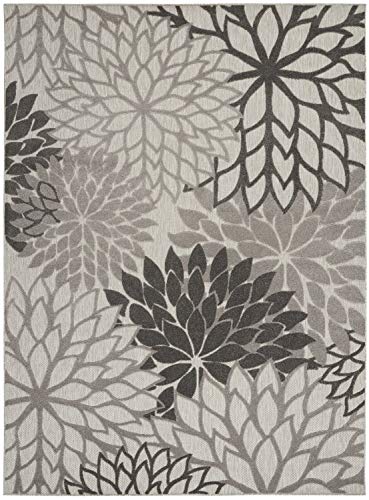 Nourison Aloha Indoor/Outdoor Floral Silver Grey 9'6' X 13' Area Rug, (10' X 13')