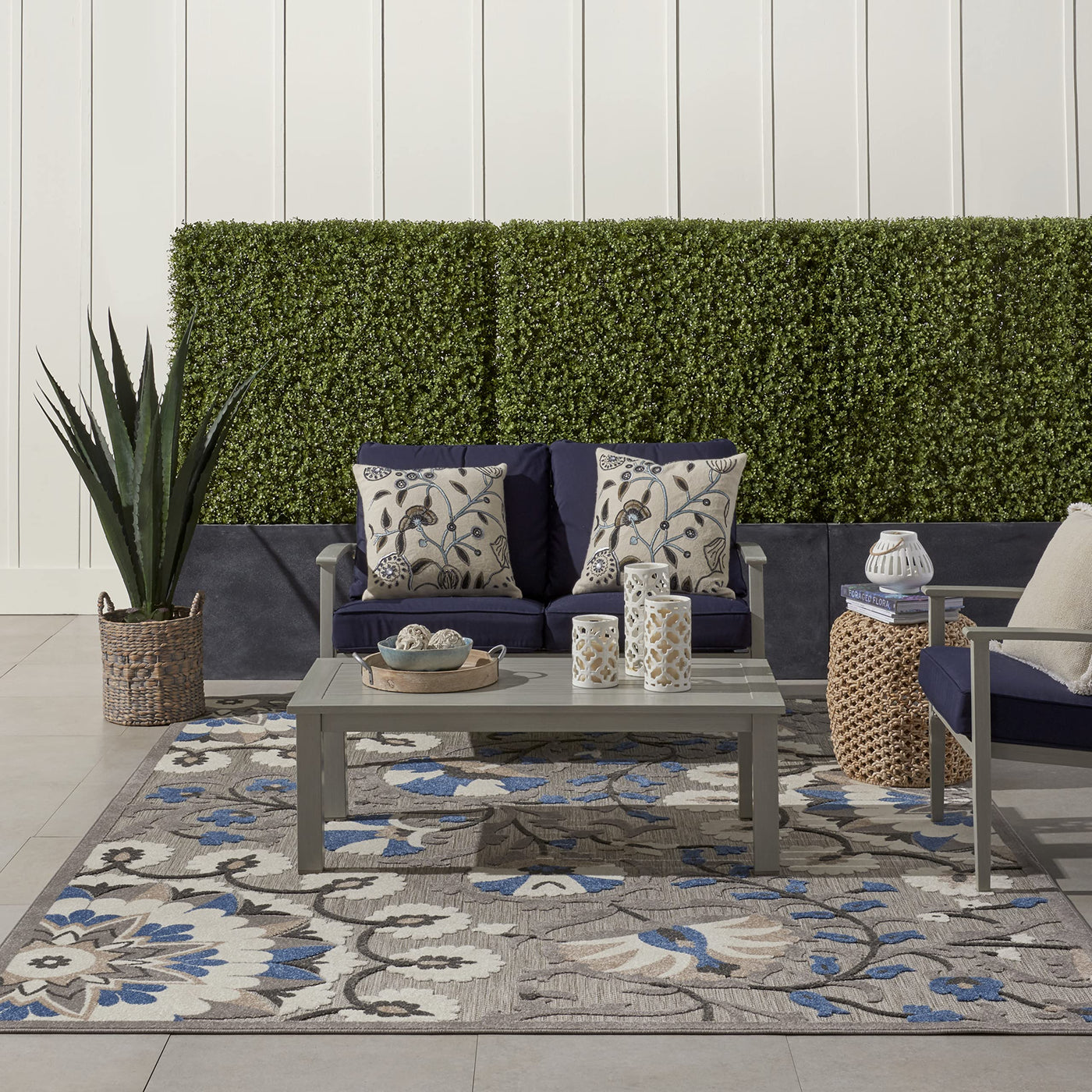 This Sunny And Sensational Collection Of Flat Woven Outdoor Rugs Is Pretty, Practical And Simply Perfect For High Traffic Areas. With Its Inviting Assortment Of Classic And Contemporary Designs, Tempting Color Palettes And Terrific Textures, These Multipurpose Rugs Will Afford An Air Of Simple Sophistication To Any Environment.100% Polypropylene Flat Woven This Outdoor Rug From The Aloha Collection Features Soft Cut Pile And Textural Woven Patterns In Bursts Of Color Sure To Enliven Any Space, Both Inside And Outside Your Home. Twisting Vines And Blooms In Blue, Cream And Grey Add A Festive Floral Touch To Your Patio Or Deck. Created From Premium Stain-Resistant Fibers For Long Wear, Low Maintenance, And A Splendid Texture.