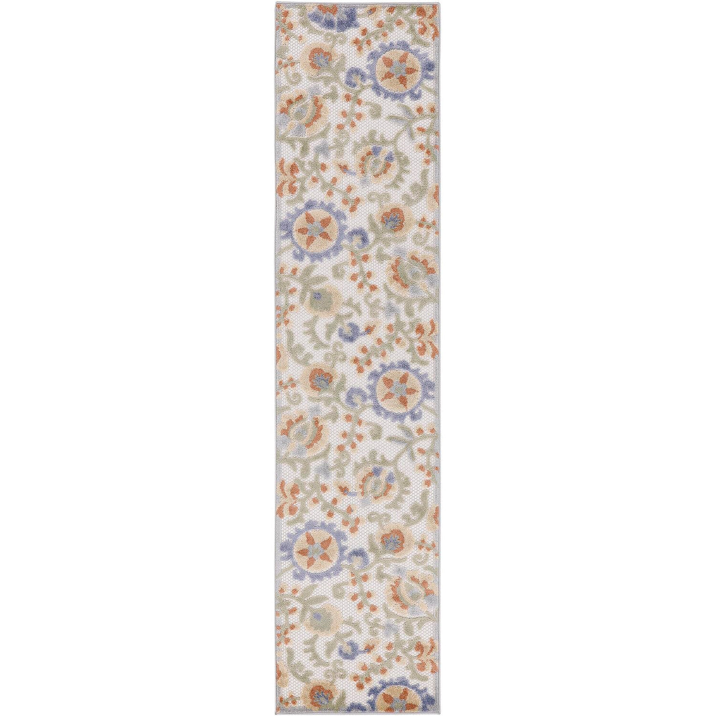 Nourison Aloha Indoor/Outdoor Ivory Blue 2' X 6' Area Rug, Easy Cleaning, Non Shedding, Bed Room, Living Room, Dining Room, Back