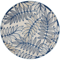 Nourison Aloha Indoor/Outdoor Ivory/Navy 4' X Round Area Rug, Tropical, Botanical, Easy Cleaning, Non Shedding, Bed Room, Kitche