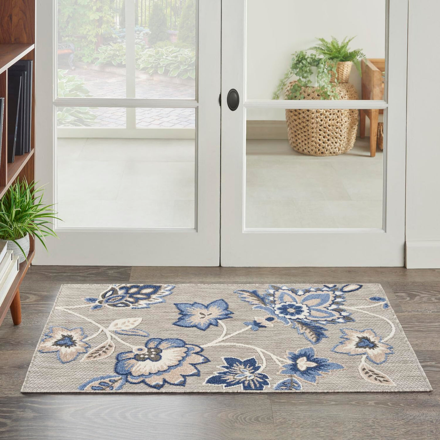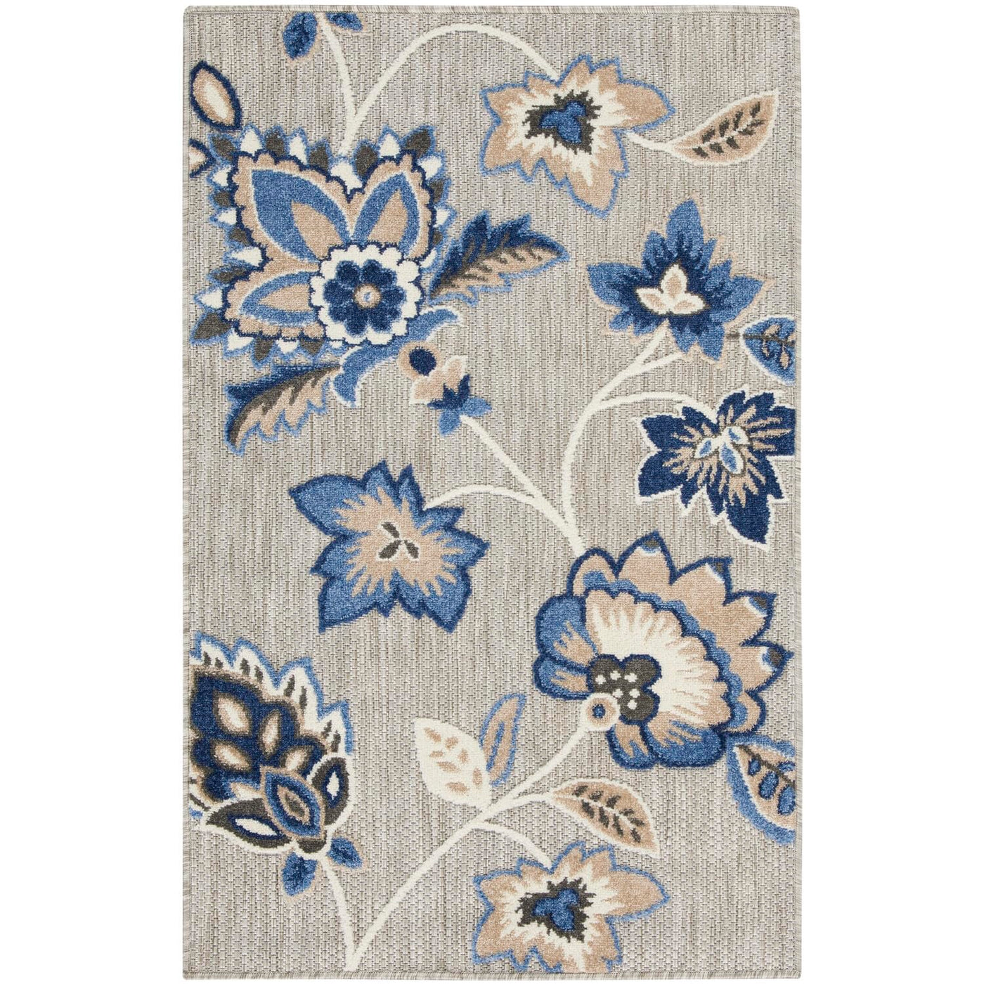 This sunny and sensational collection of flat woven outdoor rugs is pretty, practical and simply perfect for high traffic areas. With its inviting assortment of classic and contemporary designs, tempting color palettes and terrific textures, these multipurpose rugs will afford an air of simple sophistication to any environment.100% Polypropylene • Flat Woven Invite a touch of country charm to your home with this blue and grey floral outdoor rug from the Aloha Collection. Featuring a classic flower-and-vine pattern enhanced with a subtly raised cut pile, the contemporary design adds a subtle sense of depth to your porch, patio, or balcony. Made from durable polypropylene yarns, this rug can easily be used indoors in any high-traffic area including your kitchen, dining room, living room, and hallway.