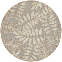 Nourison Aloha Indoor/Outdoor Natural 4' X Round Area Rug, Tropical, Botanical, Easy Cleaning, Non Shedding, Bed Room, Kitchen,