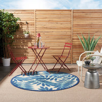 Nourison Aloha Indoor/Outdoor Navy 7'10' X Round Area Rug, Tropical, Botanical, Easy Cleaning, Non Shedding, Bed Room, Kitchen,