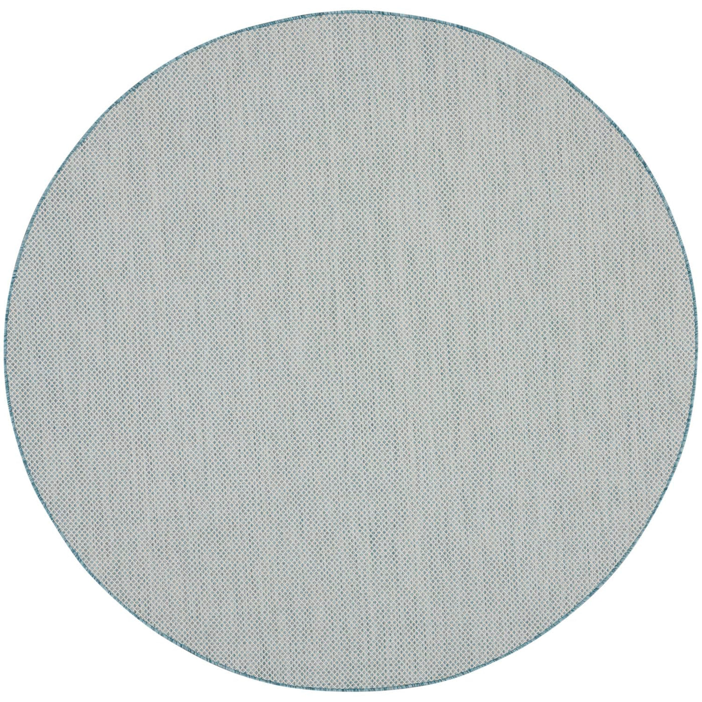 Nourison Courtyard Indoor/Outdoor Ivory/Aqua 6' X Round Area Rug, Easy Cleaning, Non Shedding, Bed Room, Living Room, Dining Roo