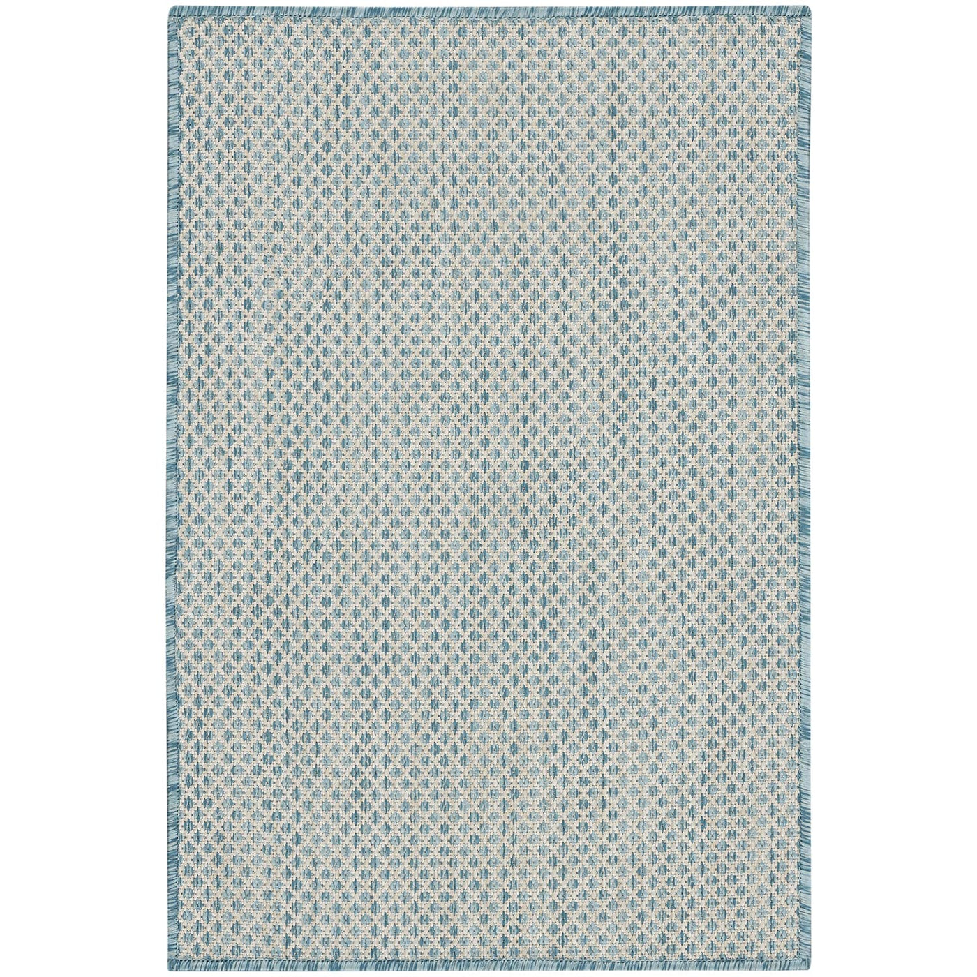 Set A Warm And Relaxing Tone With The Courtyard Collection. These Elegantly Understated Outdoor Rugs Feature Subtly Textured Geometric Patterns In Fashionable Palettes Designed To Anchor Modern And Contemporary Decor. Flat Woven Polypropylene Fibers Stand Up To Heavy Traffic And Are Easy To Clean: Simply Hose-Rinse And Air Dry. Courtyard Rugs Are Ideal For Your Porch, Patio, Or Any Indoor Space. With Its Striking Geometric Pattern In Ivory And Aqua Blue, This Courtyard Collection Outdoor Rug Exudes Contemporary Style. Its Subtly Textured Surface Is Crafted In Classic Ivory And Aqua Blue For A Seamless Complement To Modern Settings. Machine Made Polypropylene Flat Weave Stands Up To Heavy Traffic And Is Easy To Clean: Just Hose-Rinse And Air Dry.