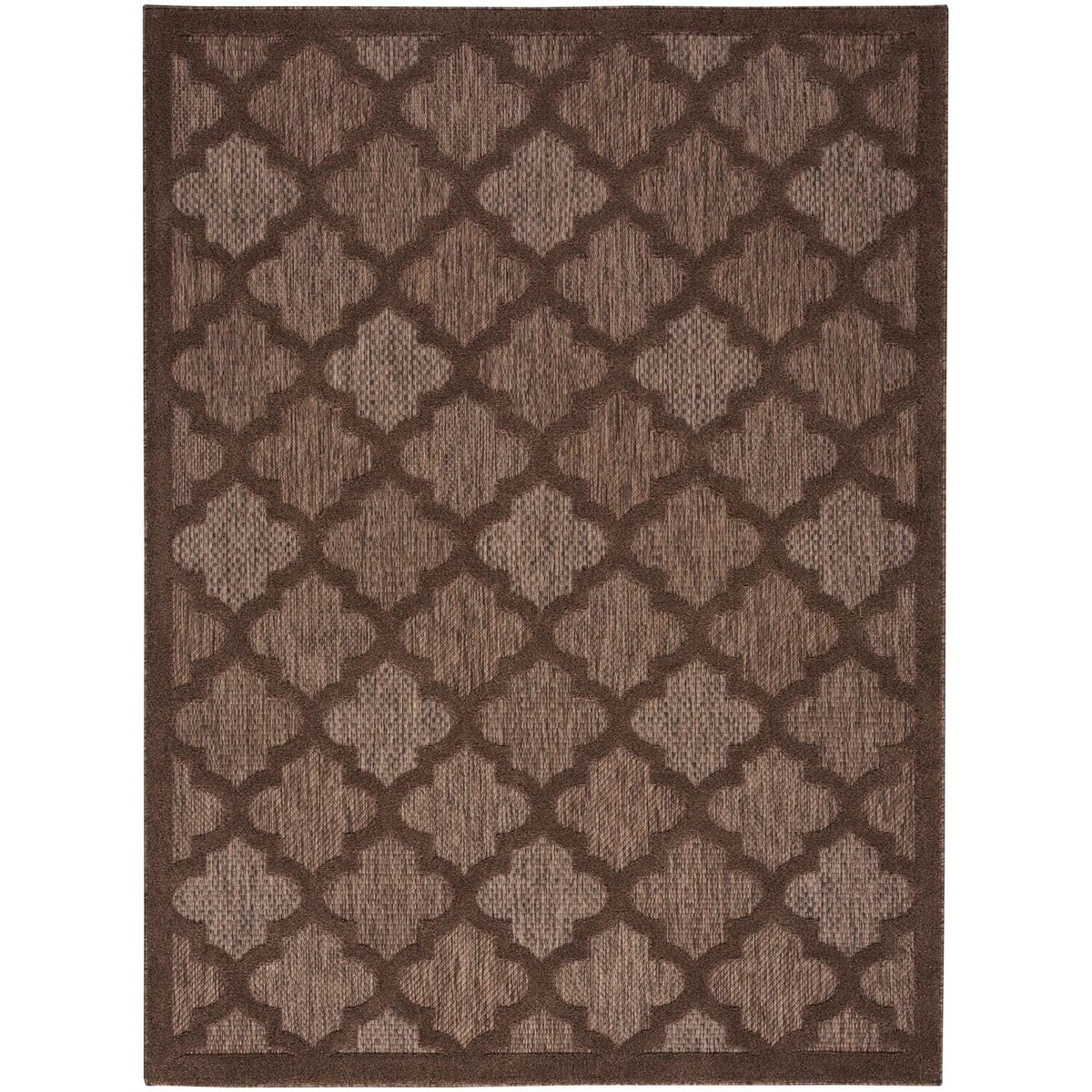 Refresh your home with the stylish designs showcased in the Nourison Easy Care Rug Collection. Featuring a flatweave ground with a softly textured high-low pattern, these indoor/outdoor rugs bring pleasing dimension to just about any space – from the living room, entryway, or kitchen to the porch, patio, deck, or balcony. Machine made from durable, low-shed, easy-clean fibers that are great in busy households and for all seasons spent outdoors. Ground your indoor or outdoor seating area in the stylish appeal of this outdoor rug from the Easy Care Collection. The space-dyed backdrop, presented in comforting brown earth tones, is enhanced by a raised Moroccan trellis pattern that adds an appealing sense of depth. Place it in your living room, dining room, entryway, or favorite outdoor space such as the patio, porch, or deck for an instant boost of inviting style. Machine-made from durable, low-shed fibers that are easy to clean, making this a great choice for all seasons spent outdoors.