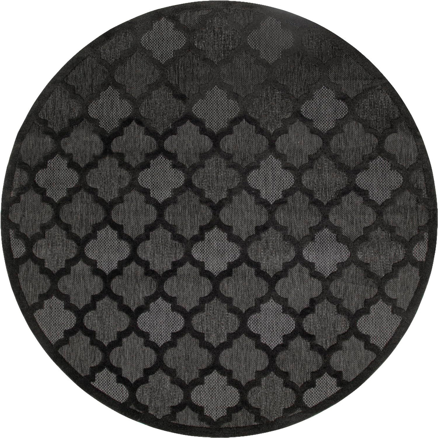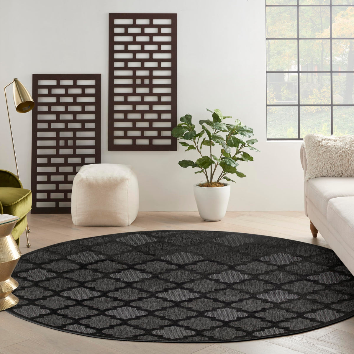 Nourison Easy Care Indoor/Outdoor Charcoal Black 10' X Round Area Rug, Easy Cleaning, Non Shedding, Bed Room, Living Room, Dining Room, Backyard, Deck, Patio (10 Round)