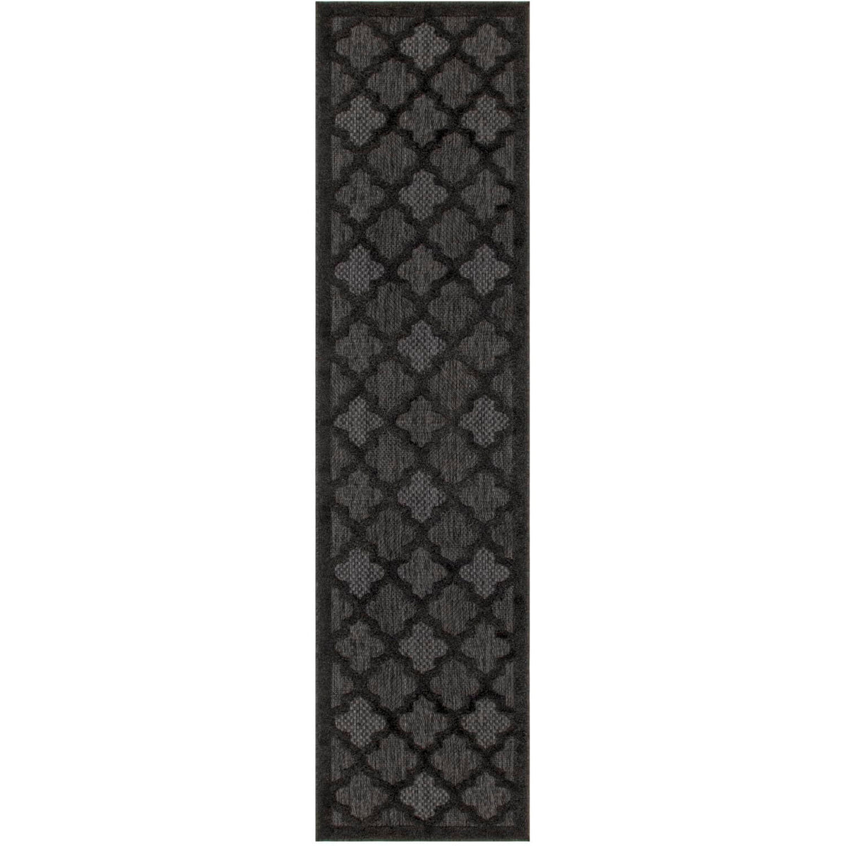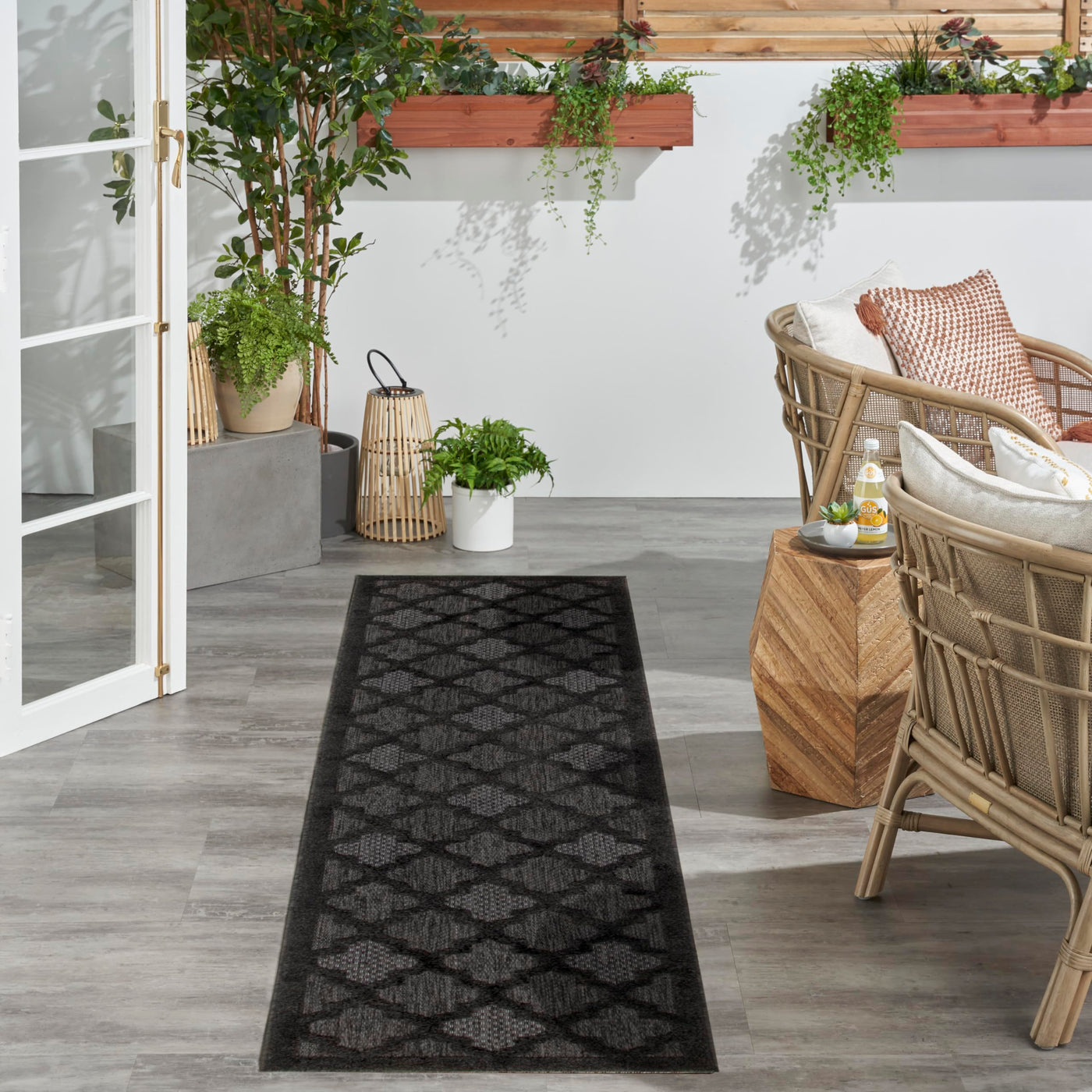 Nourison Easy Care Indoor/Outdoor Charcoal Black 2' X 6' Area Rug, Easy Cleaning, Non Shedding, Bed Room, Living Room, Dining Room, Backyard, Deck, Patio (2X6)