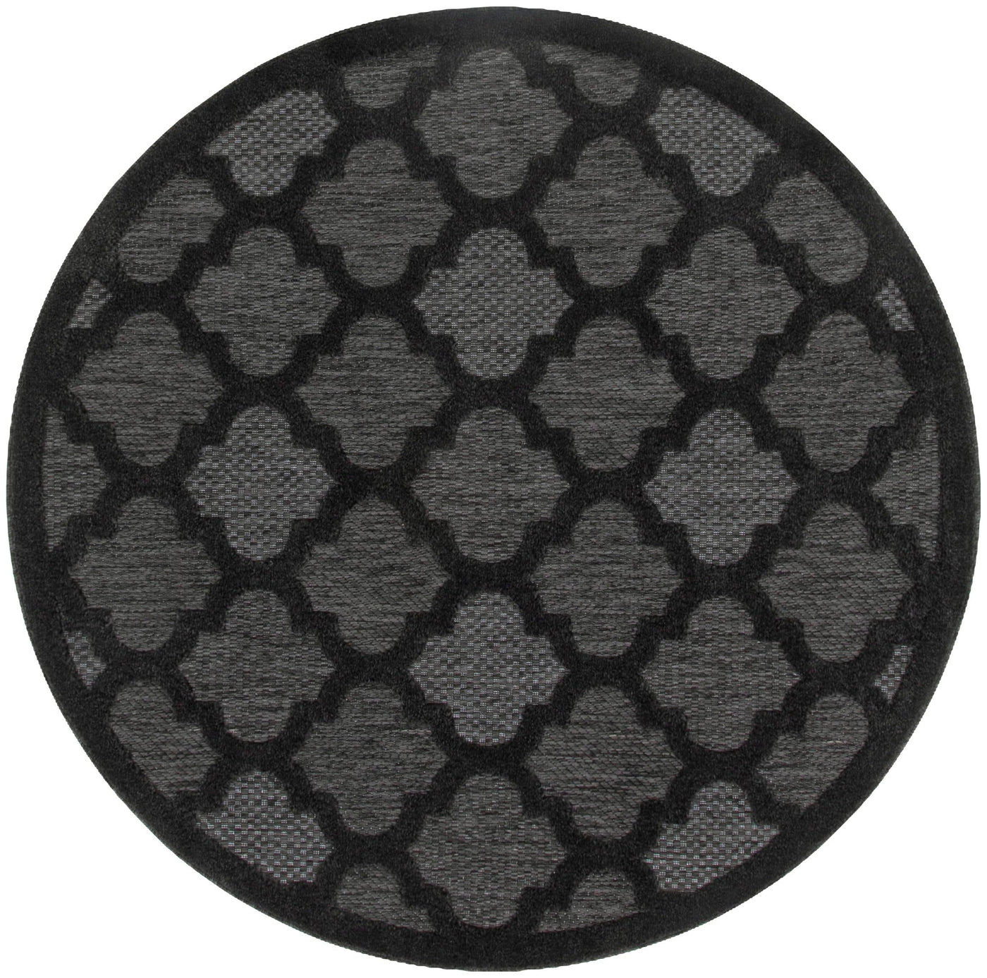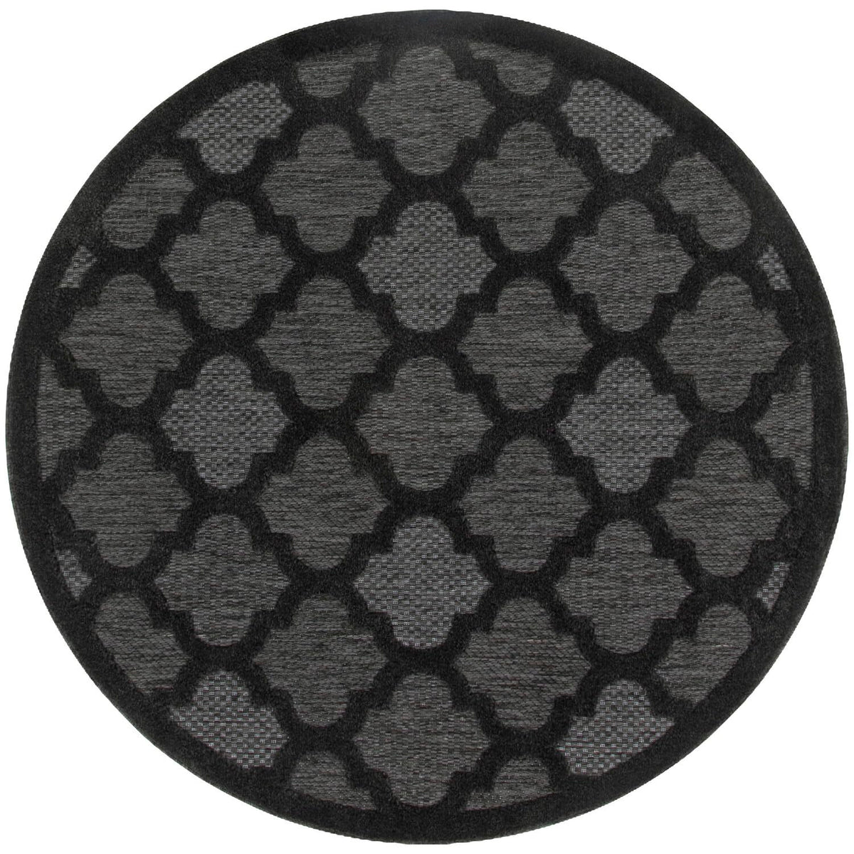 Nourison Easy Care Indoor/Outdoor Charcoal Black 4' X Round Area Rug, Easy Cleaning, Non Shedding, Bed Room, Living Room, Dining Room, Backyard, Deck, Patio (4 Round)
