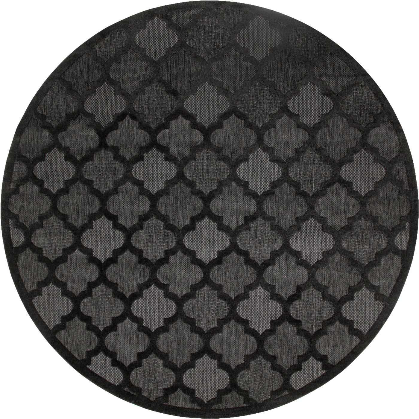 Nourison Easy Care Indoor/Outdoor Charcoal Black 8' X Round Area Rug, Easy Cleaning, Non Shedding, Bed Room, Living Room, Dining Room, Backyard, Deck, Patio (8 Round)