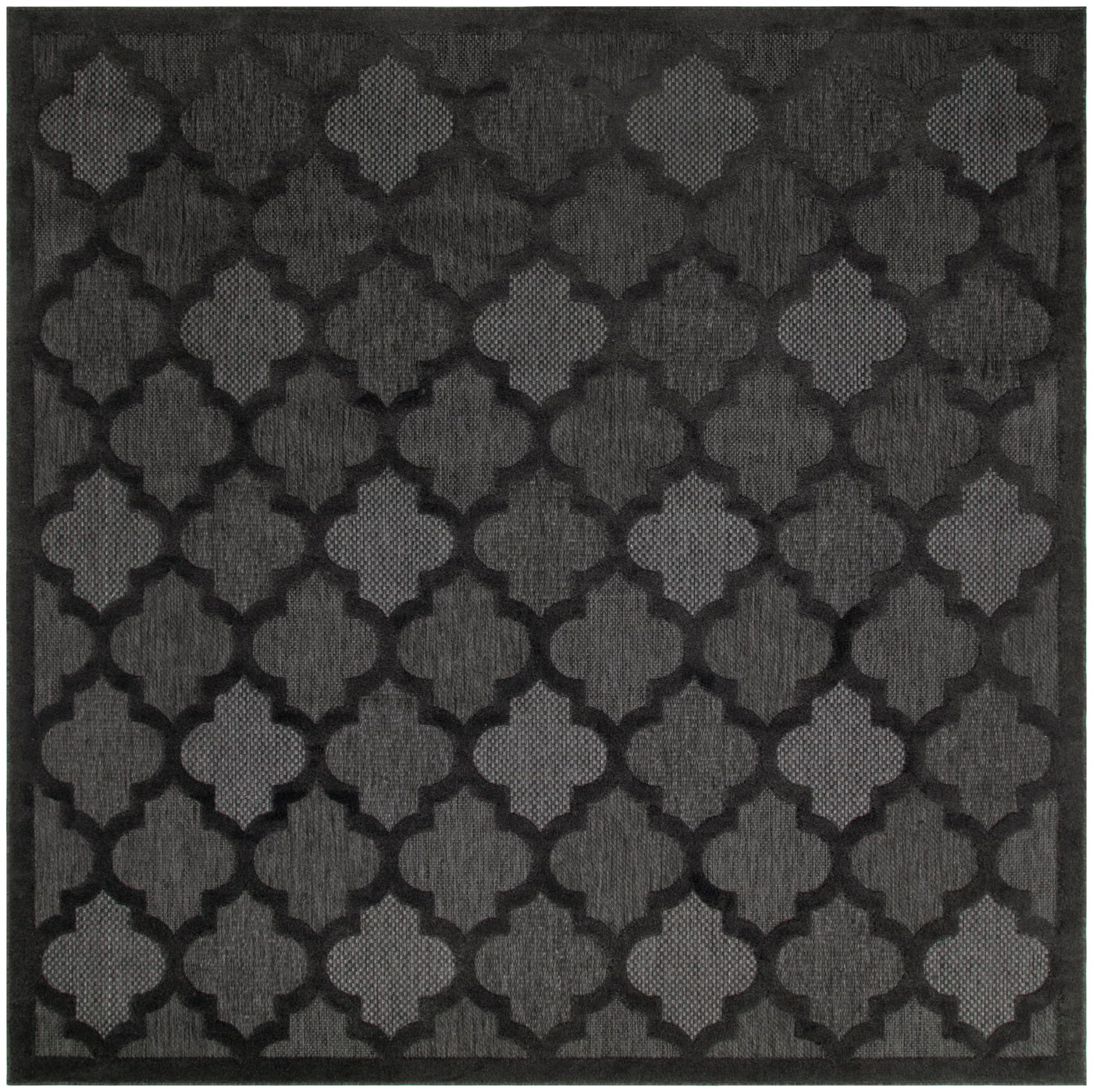 Nourison Easy Care Indoor/Outdoor Charcoal Black 9' X Square Area Rug, Easy Cleaning, Non Shedding, Bed Room, Living Room, Dining Room, Backyard, Deck, Patio (9 Square)