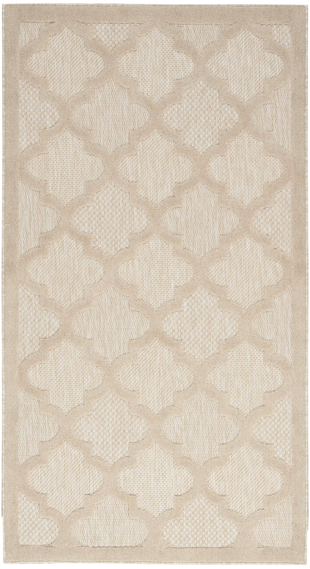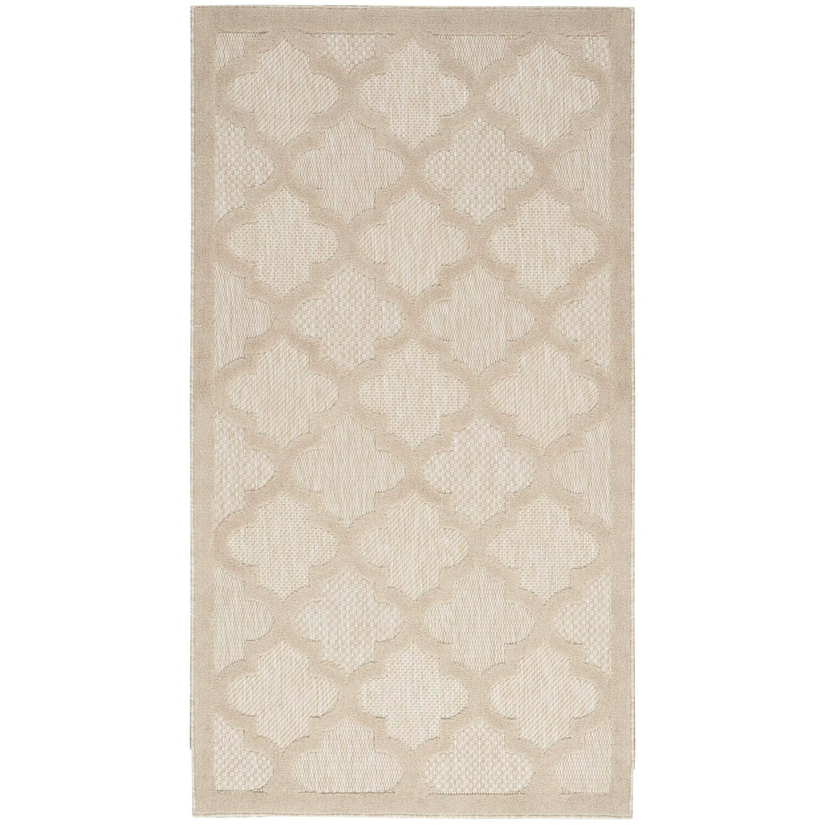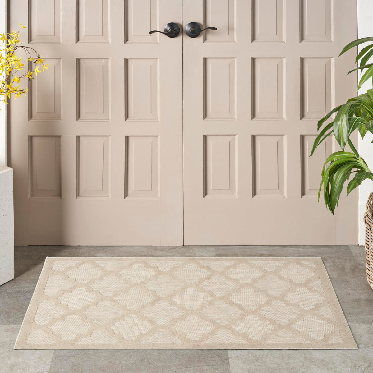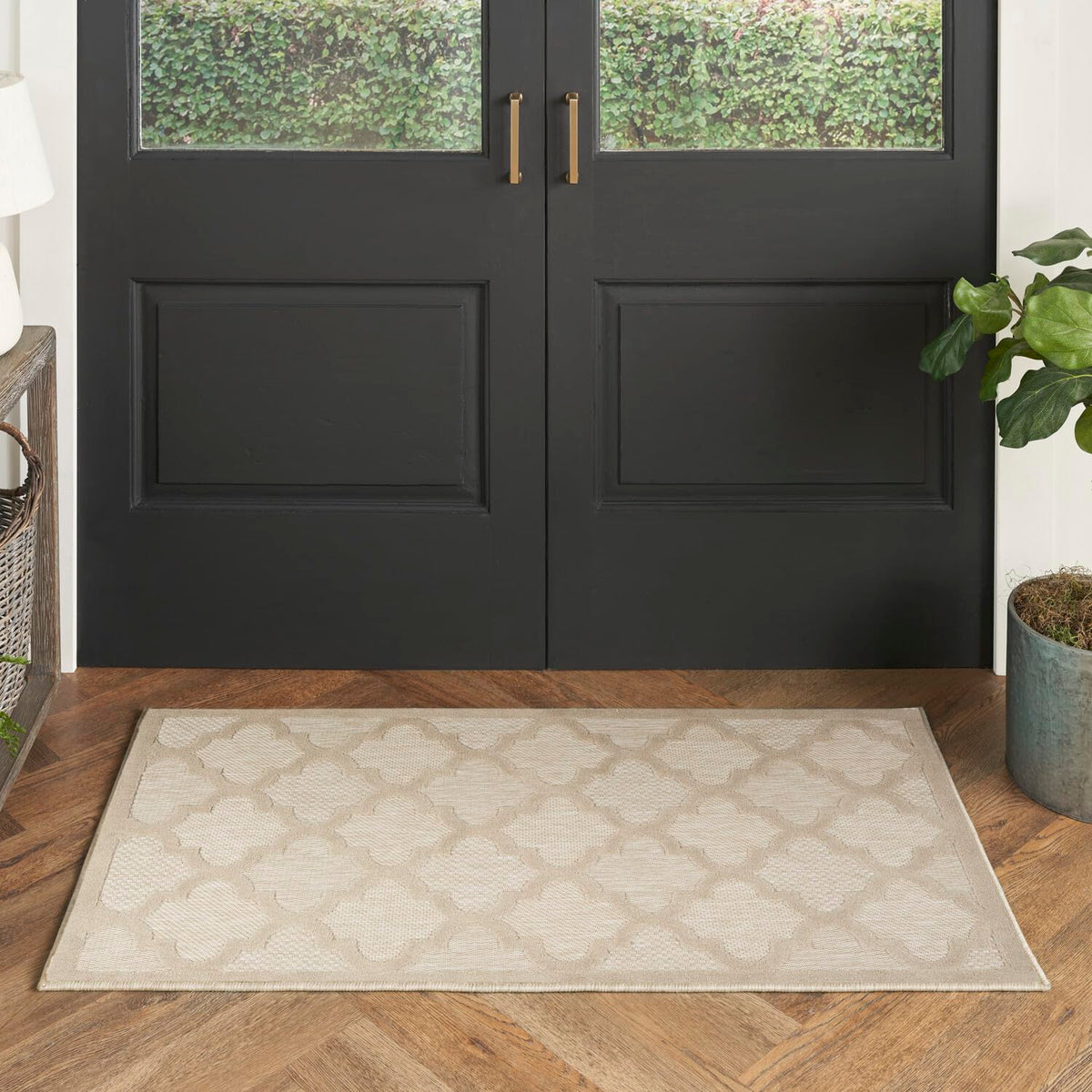 Refresh your home with the stylish designs showcased in the Nourison Easy Care Rug Collection. Featuring a flatweave ground with a softly textured high-low pattern, these indoor/outdoor rugs bring pleasing dimension to just about any space – from the living room, entryway, or kitchen to the porch, patio, deck, or balcony. Machine made from durable, low-shed, easy-clean fibers that are great in busy households and for all seasons spent outdoors. Ground your indoor or outdoor seating area in the stylish appeal of this outdoor rug from the Easy Care Collection. The space-dyed backdrop, presented in earthy cream tones, is enhanced by a raised Moroccan trellis pattern that adds an appealing sense of depth. Place it in your living room, dining room, entryway, or favorite outdoor space such as the patio, porch, or deck for an instant boost of inviting style. Machine-made from durable, low-shed fibers that are easy to clean, making this a great choice for all seasons spent outdoors.