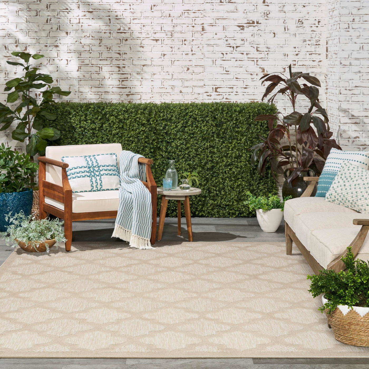 Refresh your home with the stylish designs showcased in the Nourison Easy Care Rug Collection. Featuring a flatweave ground with a softly textured high-low pattern, these indoor/outdoor rugs bring pleasing dimension to just about any space – from the living room, entryway, or kitchen to the porch, patio, deck, or balcony. Machine made from durable, low-shed, easy-clean fibers that are great in busy households and for all seasons spent outdoors. Ground your indoor or outdoor seating area in the stylish appeal of this outdoor rug from the Easy Care Collection. The space-dyed backdrop, presented in earthy cream tones, is enhanced by a raised Moroccan trellis pattern that adds an appealing sense of depth. Place it in your living room, dining room, entryway, or favorite outdoor space such as the patio, porch, or deck for an instant boost of inviting style. Machine-made from durable, low-shed fibers that are easy to clean, making this a great choice for all seasons spent outdoors.