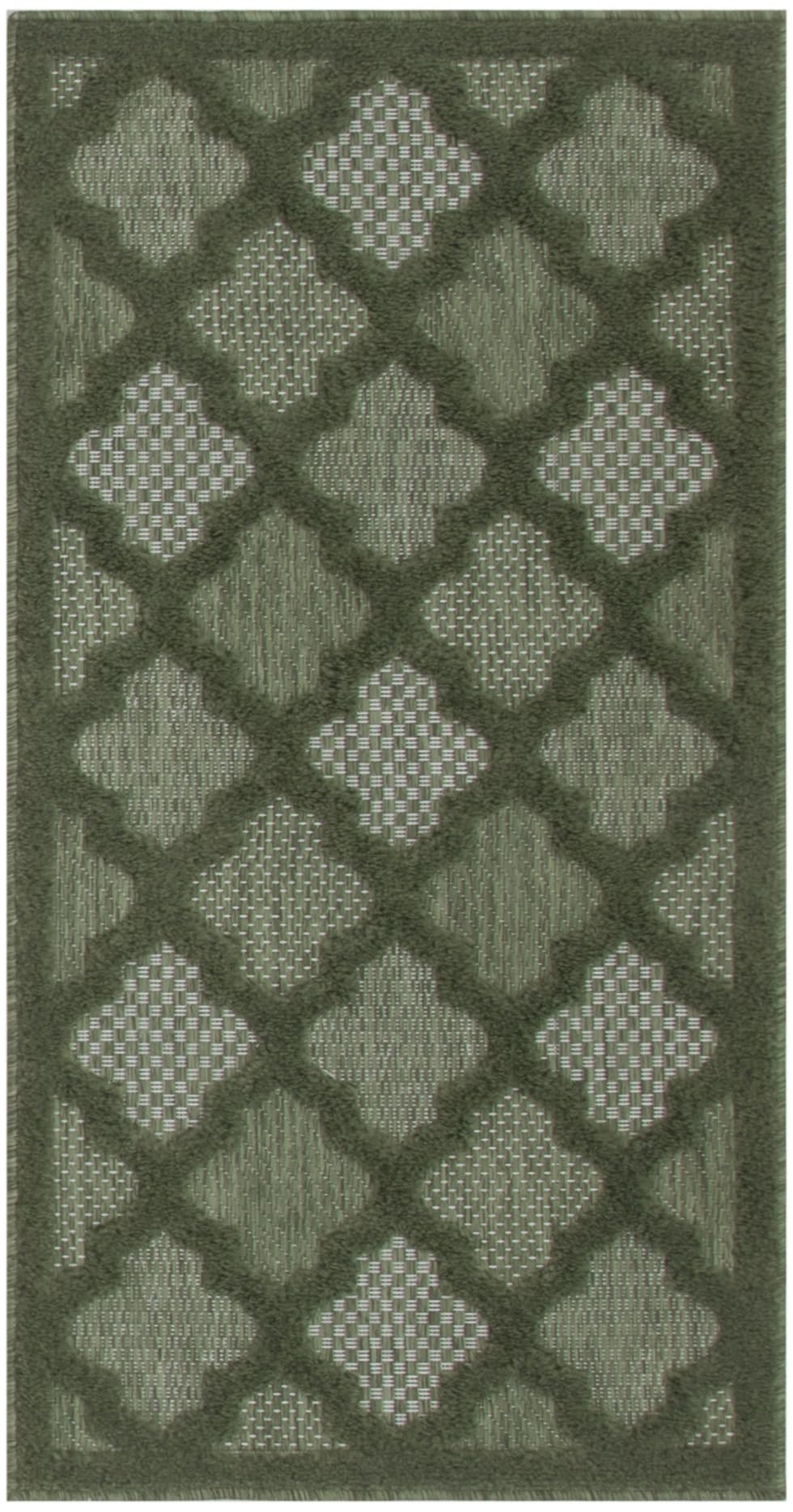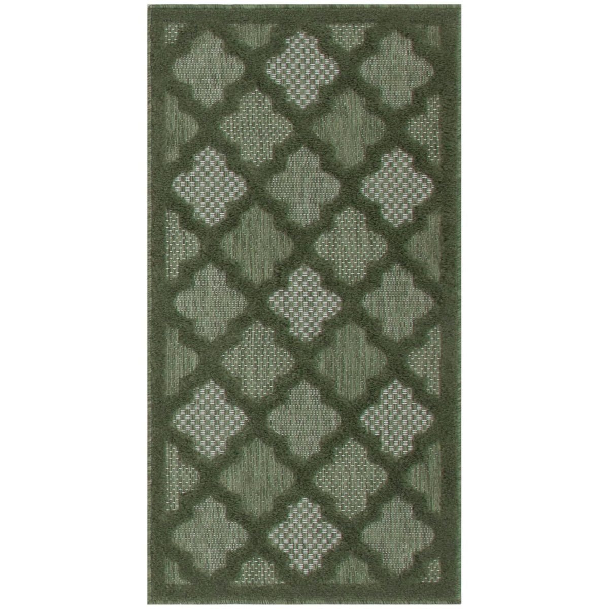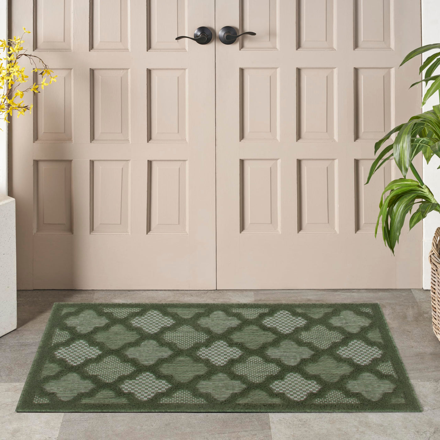Refresh your home with the stylish designs showcased in the Nourison Easy Care Rug Collection. Featuring a flatweave ground with a softly textured high-low pattern, these indoor/outdoor rugs bring pleasing dimension to just about any space – from the living room, entryway, or kitchen to the porch, patio, deck, or balcony. Machine made from durable, low-shed, easy-clean fibers that are great in busy households and for all seasons spent outdoors. Ground your indoor or outdoor seating area in the stylish appeal of this outdoor rug from the Easy Care Collection. The space-dyed backdrop, presented in an inviting earth green tone, is enhanced by a raised Moroccan trellis pattern that adds an appealing sense of depth. Place it in your living room, dining room, entryway, or favorite outdoor space such as the patio, porch, or deck for an instant style boost. Machine-made from durable, low-shed fibers that are easy to clean, making this a great choice for all seasons spent outdoors.