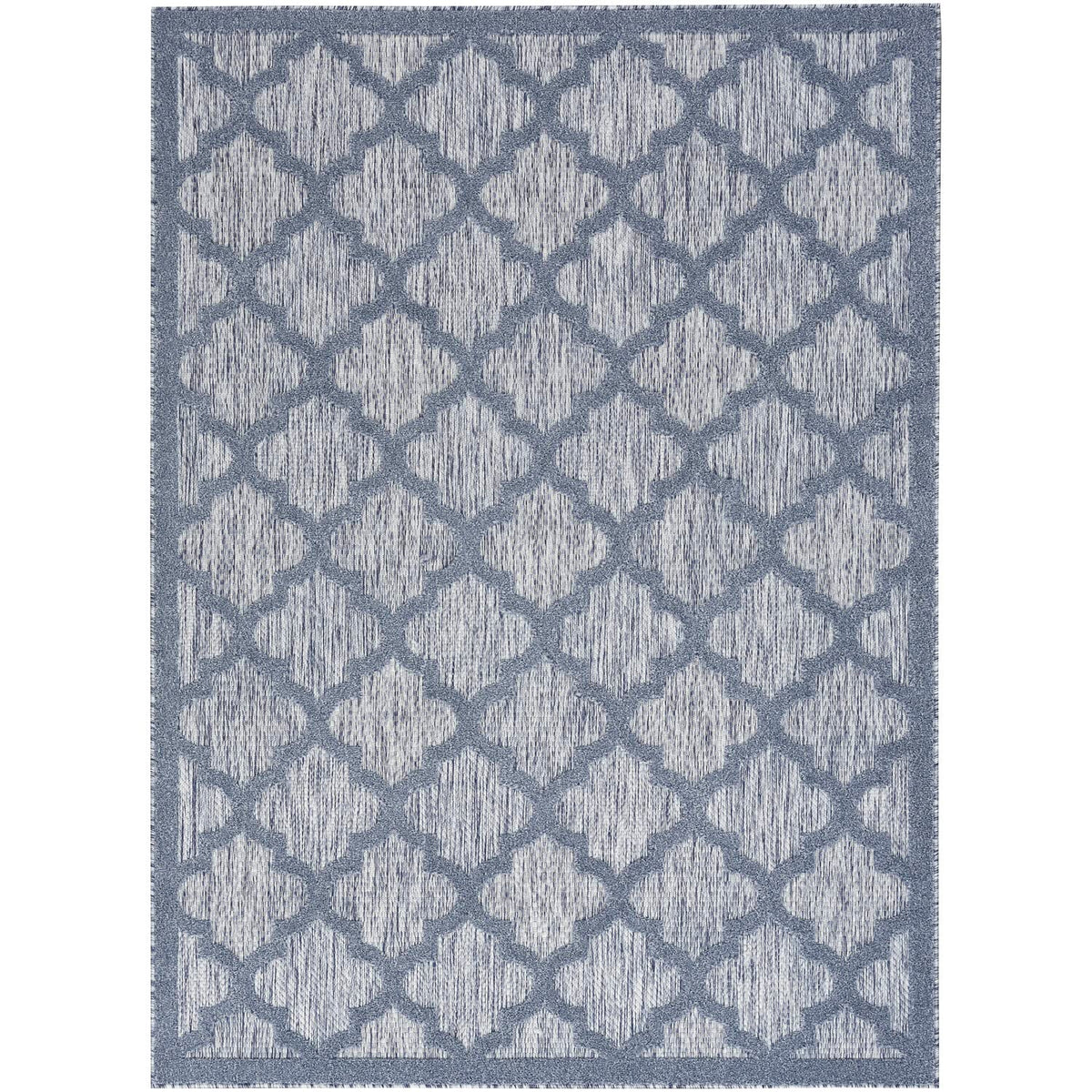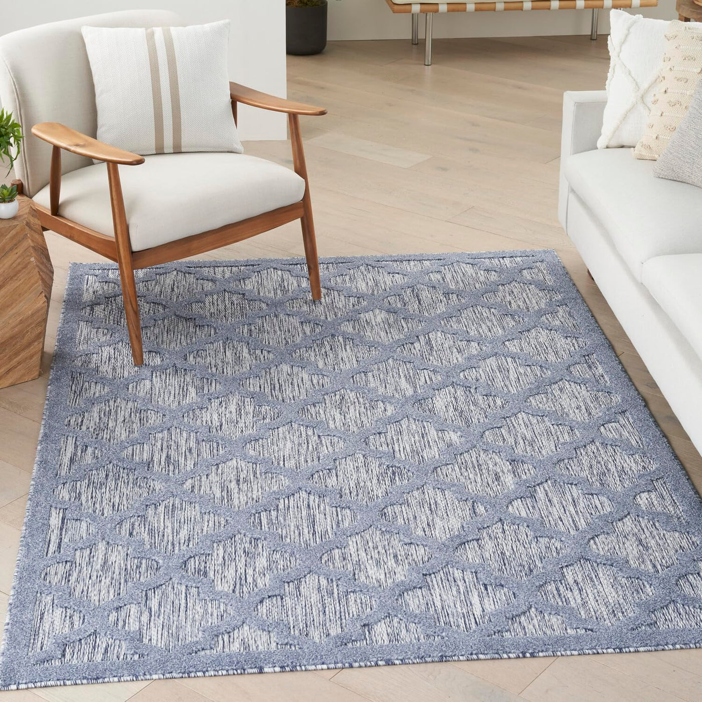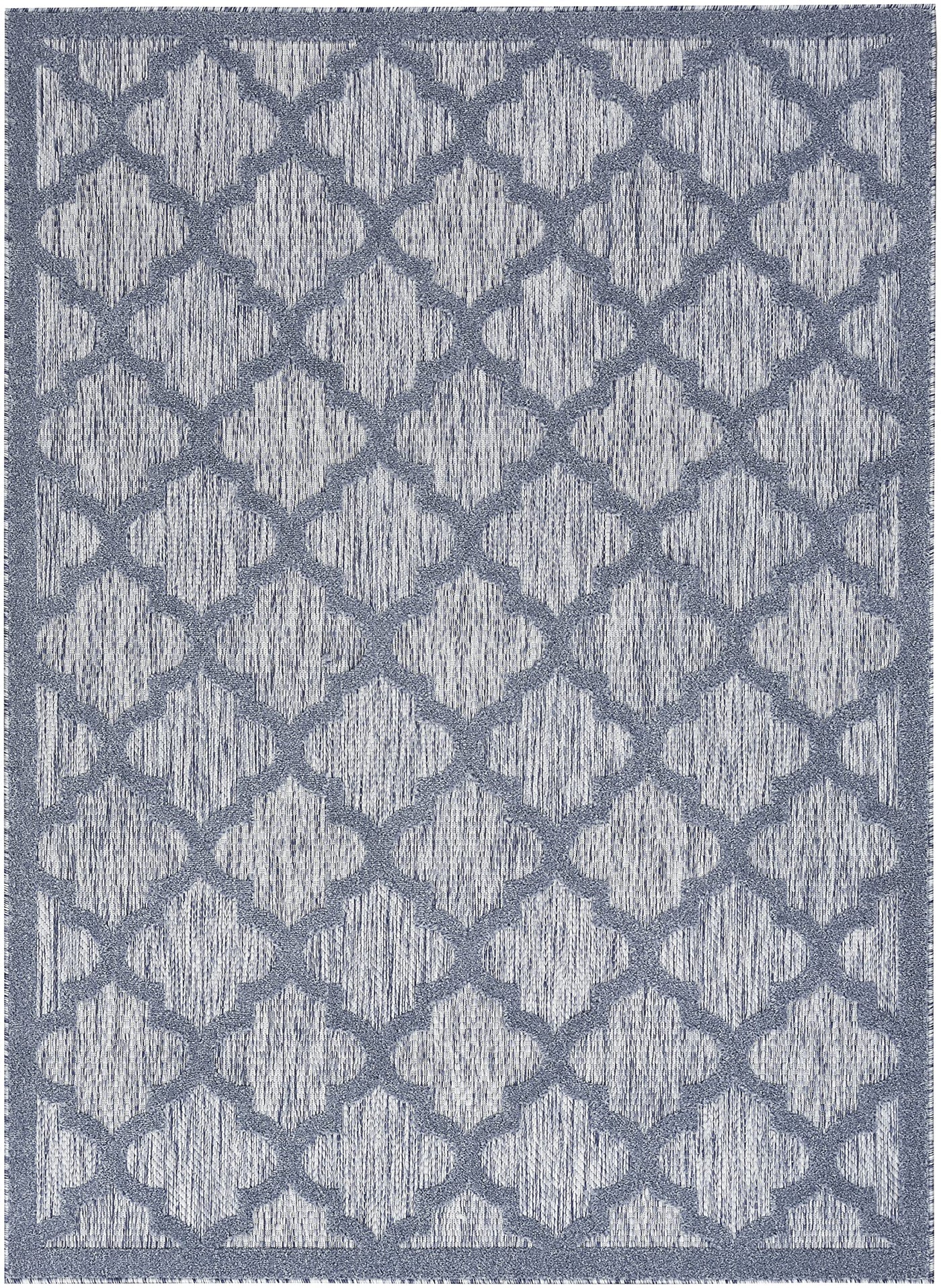 Refresh your home with the stylish designs showcased in the Nourison Easy Care Rug Collection. Featuring a flatweave ground with a softly textured high-low pattern, these indoor/outdoor rugs bring pleasing dimension to just about any space - from the living room, entryway, or kitchen to the porch, patio, deck, or balcony. Machine made from durable, low-shed, easy-clean fibers that are great in busy households and for all seasons spent outdoors. Ground your indoor or outdoor seating area in the stylish appeal of this indoor/outdoor rug from the Easy Care Collection. With a denim and white backdrop that showcases multiple flatweave styles, enhanced by a raised Moroccan trellis pattern in denim blue, this contemporary rug adds an appealing sense of depth to your surroundings. Place it in your living room, dining room, entryway, or favorite outdoor space such as the patio, porch, or deck for an instant style boost. Machine-made from durable, low-shed fibers that are easy to clean, making this a great choice for all seasons spent outdoors.