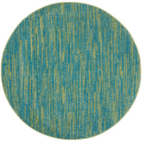 Nourison Essentials Indoor/Outdoor Blue Green 4' X Round Area Rug, Easy Cleaning, Non Shedding, Bed Room, Living Room, Dining Ro