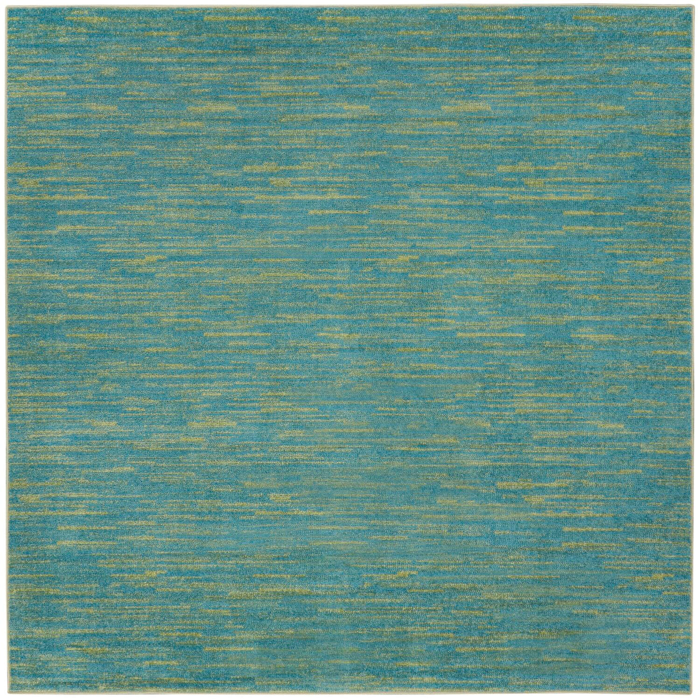 Nourison Essentials Indoor/Outdoor Blue Green 7' X Square Area -Rug, Easy -Cleaning, Non Shedding, Bed Room, Living Room, Dining Room, Backyard, Deck, Patio (7 Square)