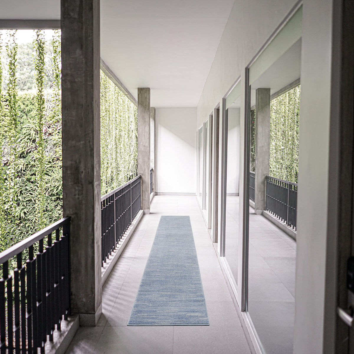 Nourison Essentials Indoor/Outdoor Blue/Grey 2'2' X 12' Area Rug, Easy Cleaning, Non Shedding, Bed Room, Living Room, Dining Room, Backyard, Deck, Patio (2X12)